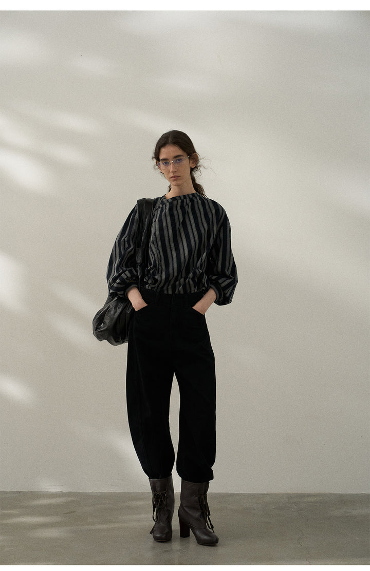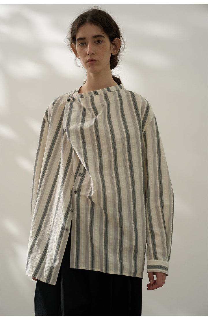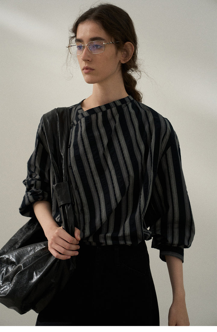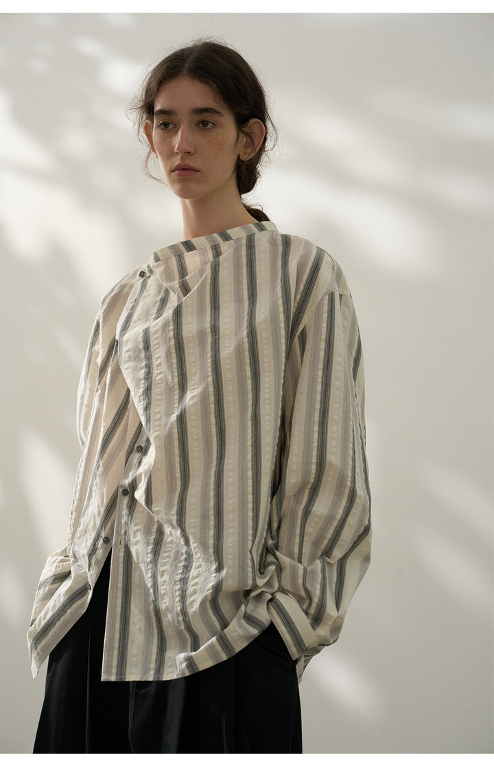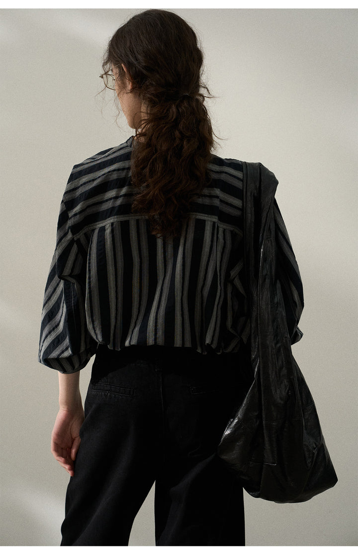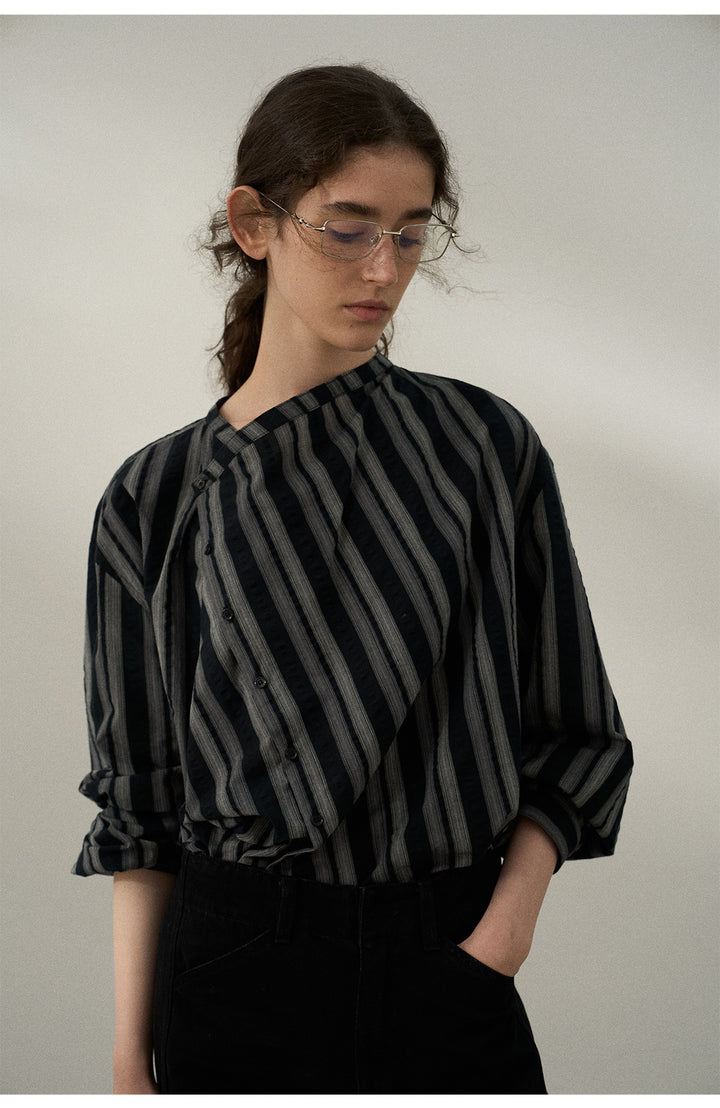 A Casual And Everyday Striped Striped Collar Contrasting Color Texture Top