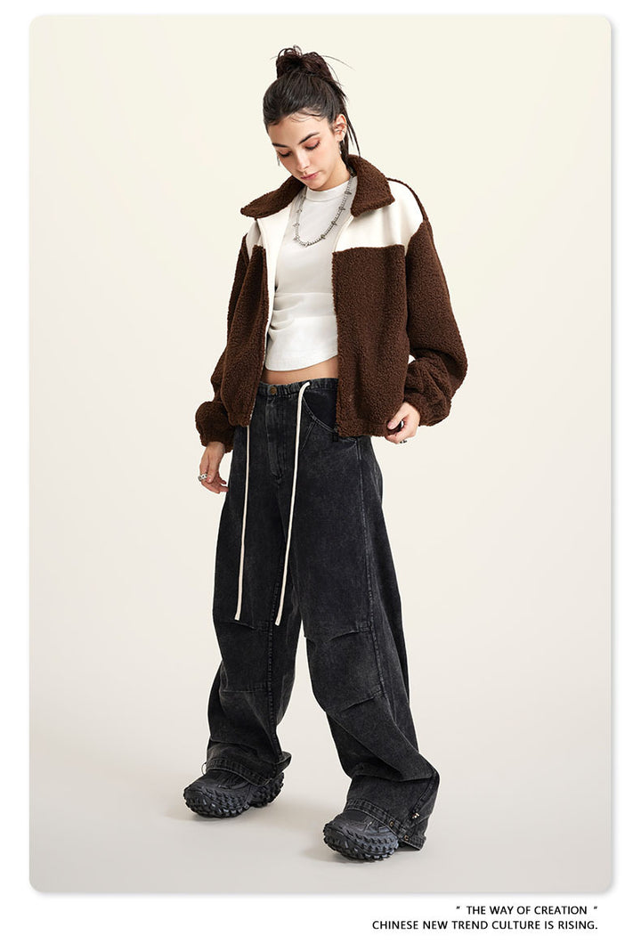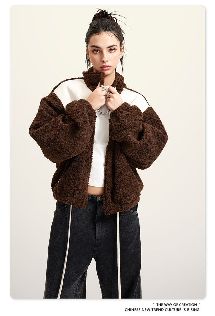 A Trendy Hot Girl's Color-matched Commuter Sweatshirt
