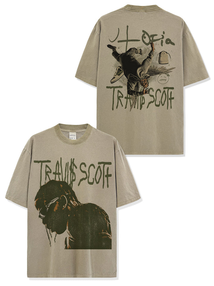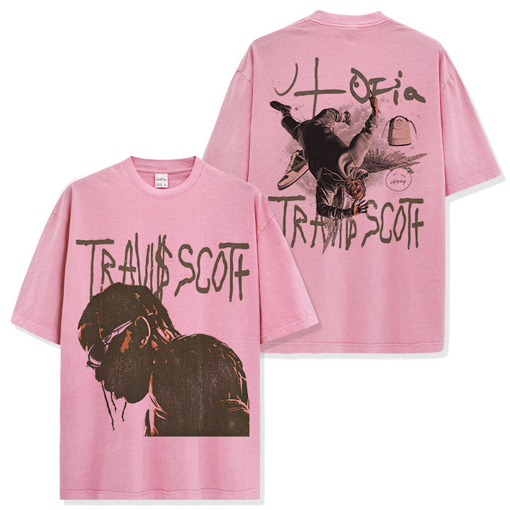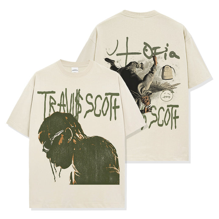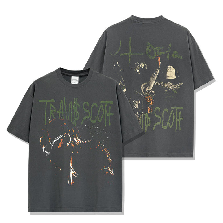 A Trendy, Youthful, Loose, Round-neck Printed Men's T-shirt
