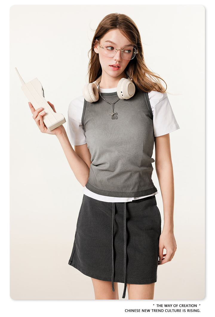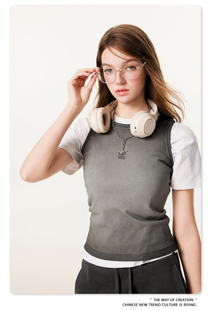 American-style Fashionable Youth Distressed Micro-elastic Three-dimensional Slimming Top