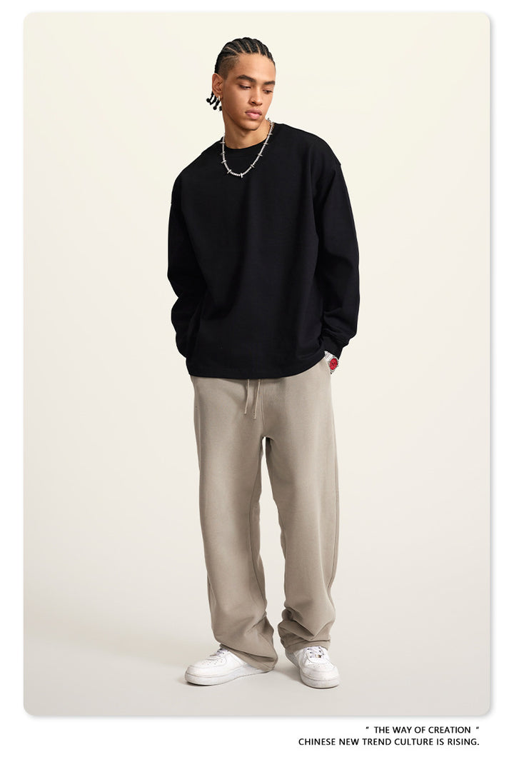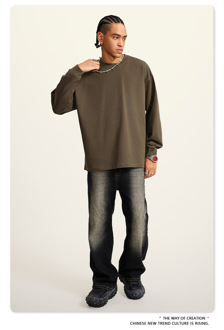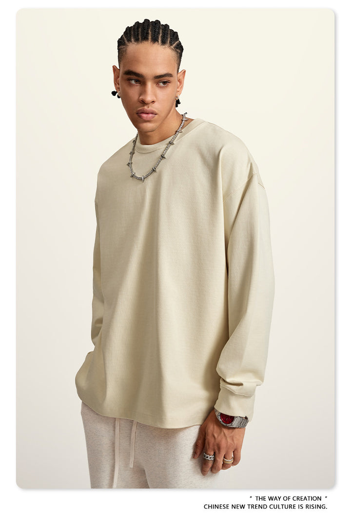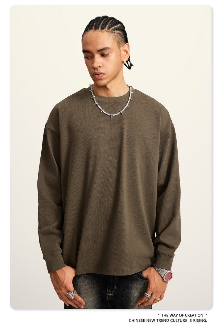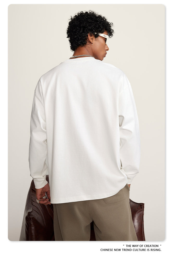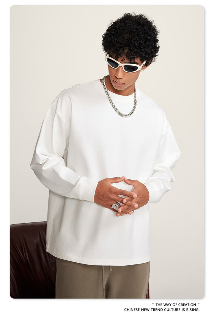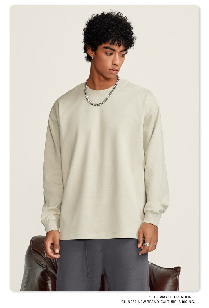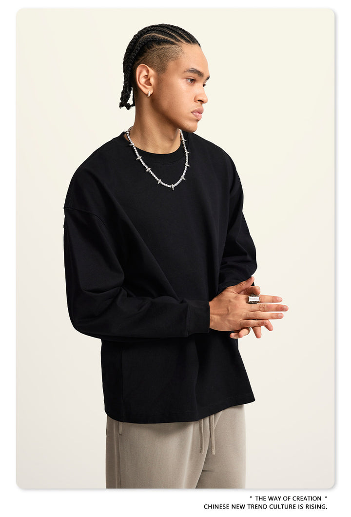 Autumn Solid-color Pure Cotton Loose Commuter Casual Men's T-shirt