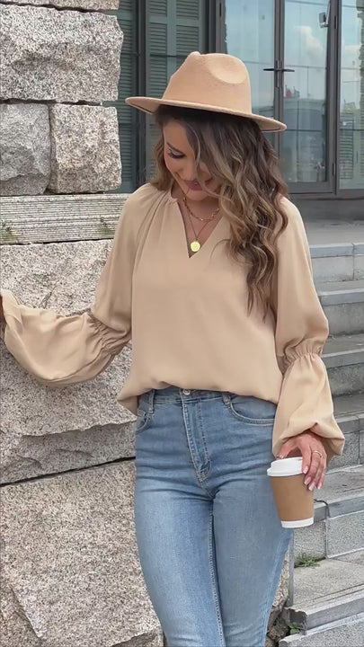 Autumn V-Neck Casual Loose Long Sleeve Pullover Top for Women