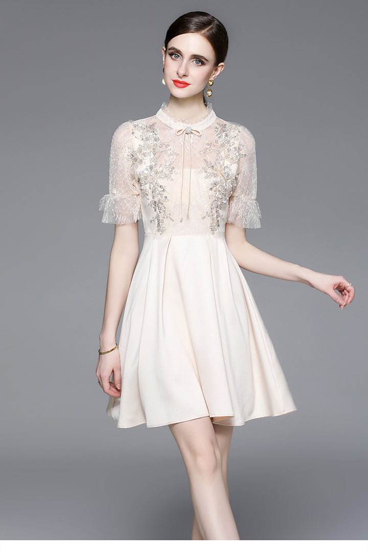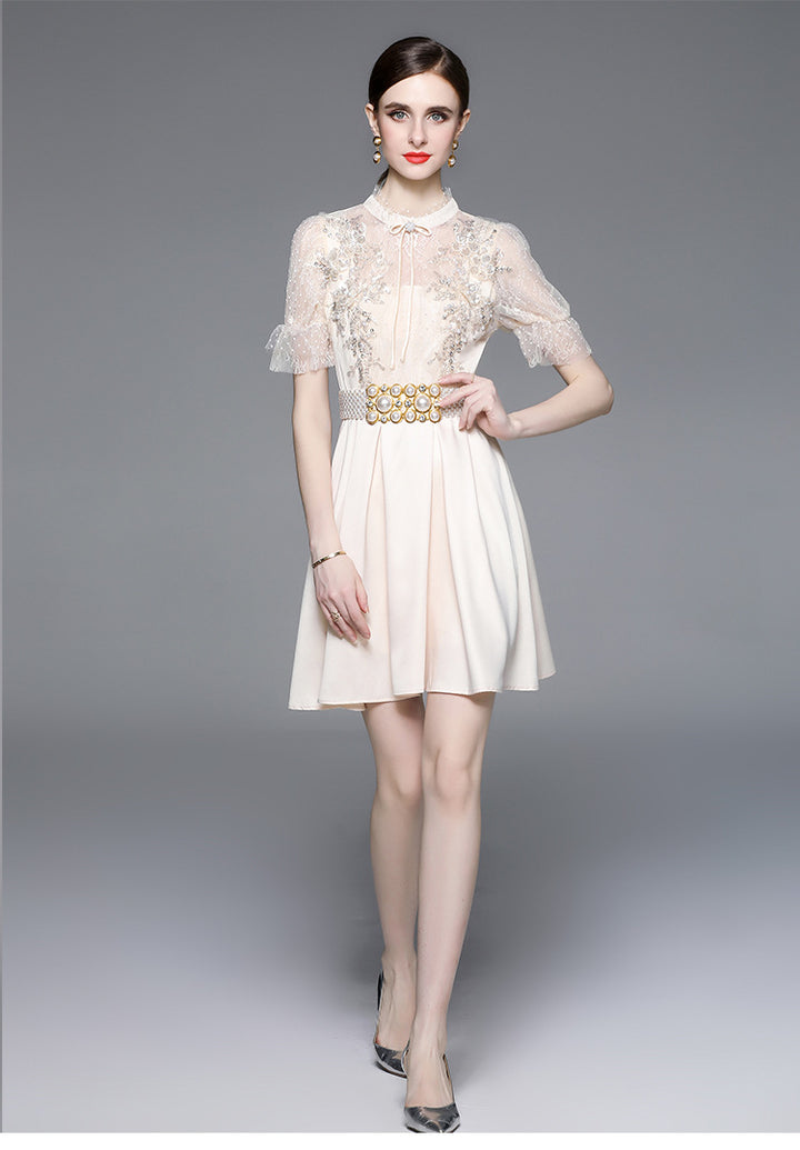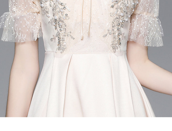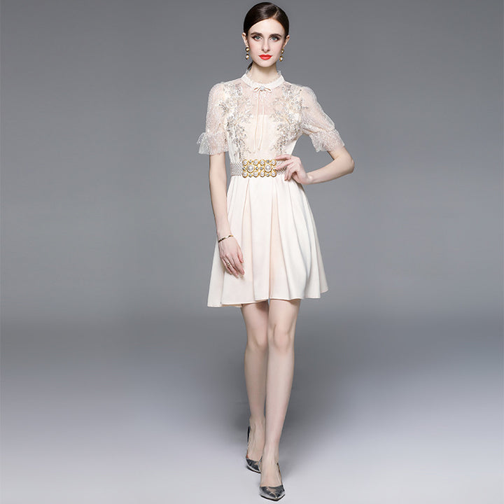 Beaded Stitching Lace High Waist Slim Temperament Slim Short Skirt Dress