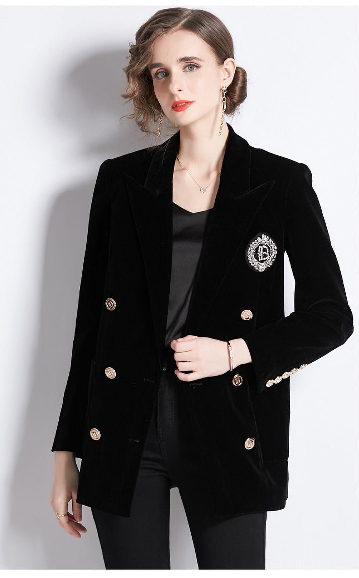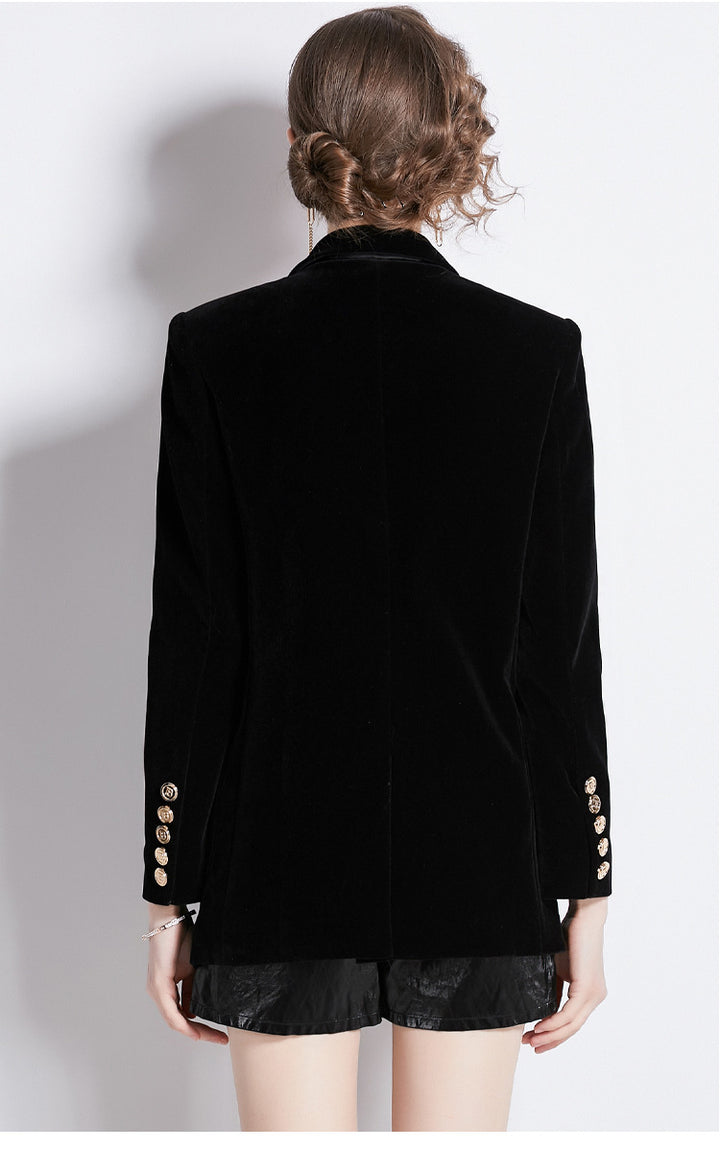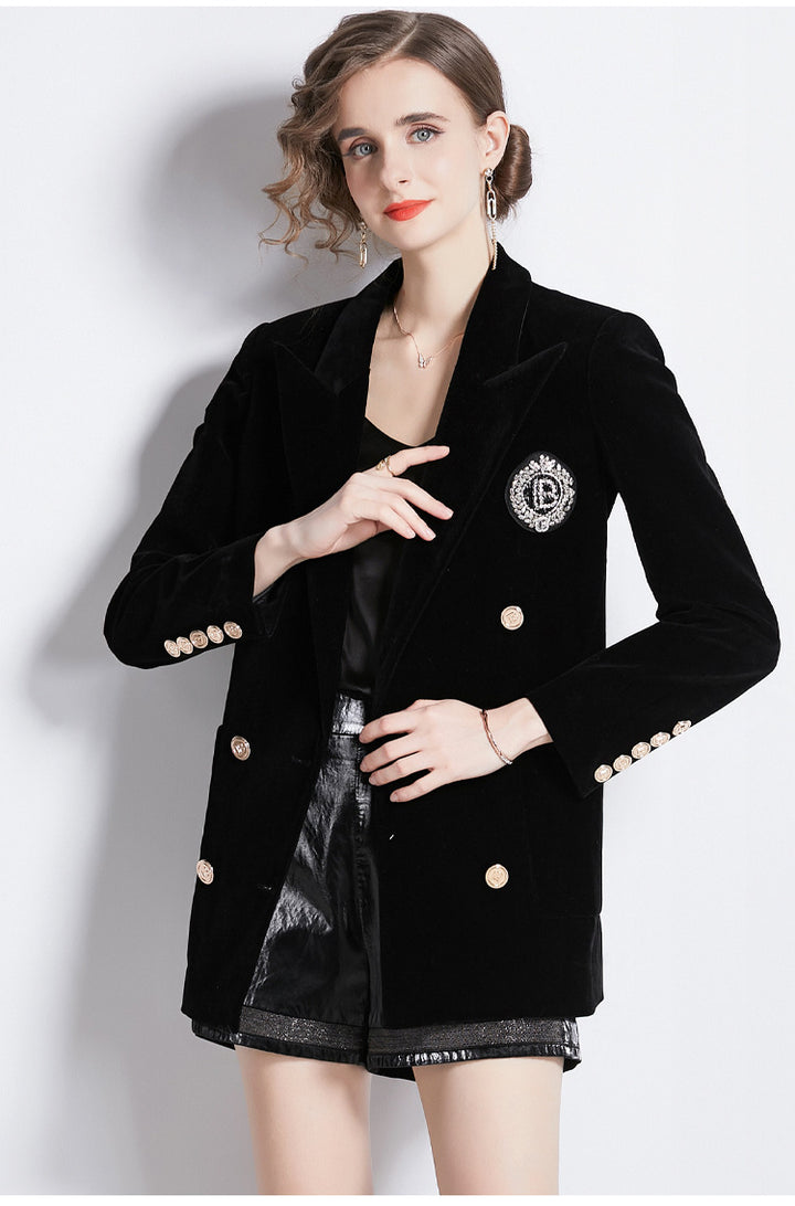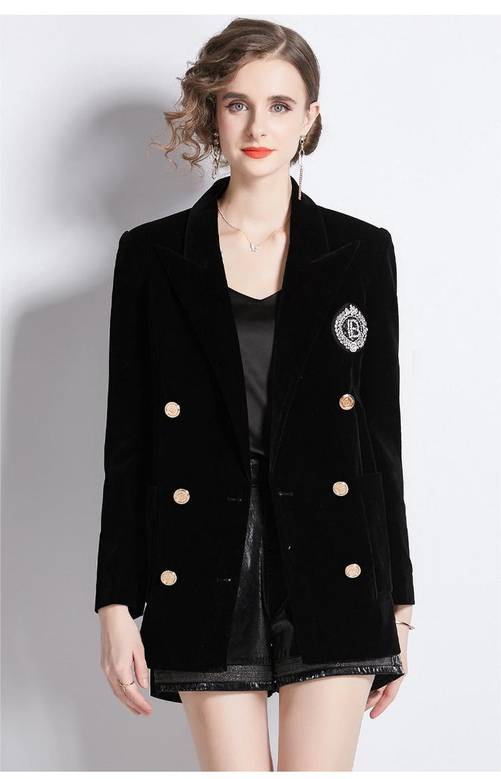 Black Canary Velvet Casual Double-Breasted Loose Mid-Length Blazer Coat