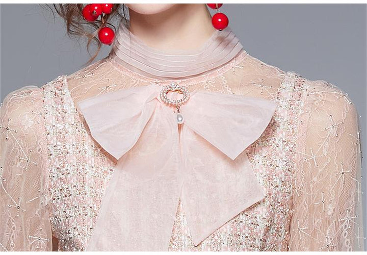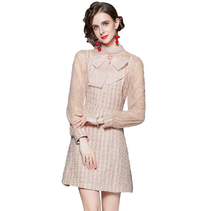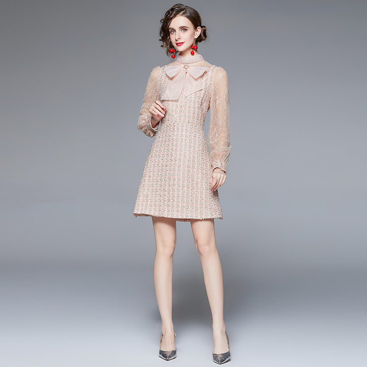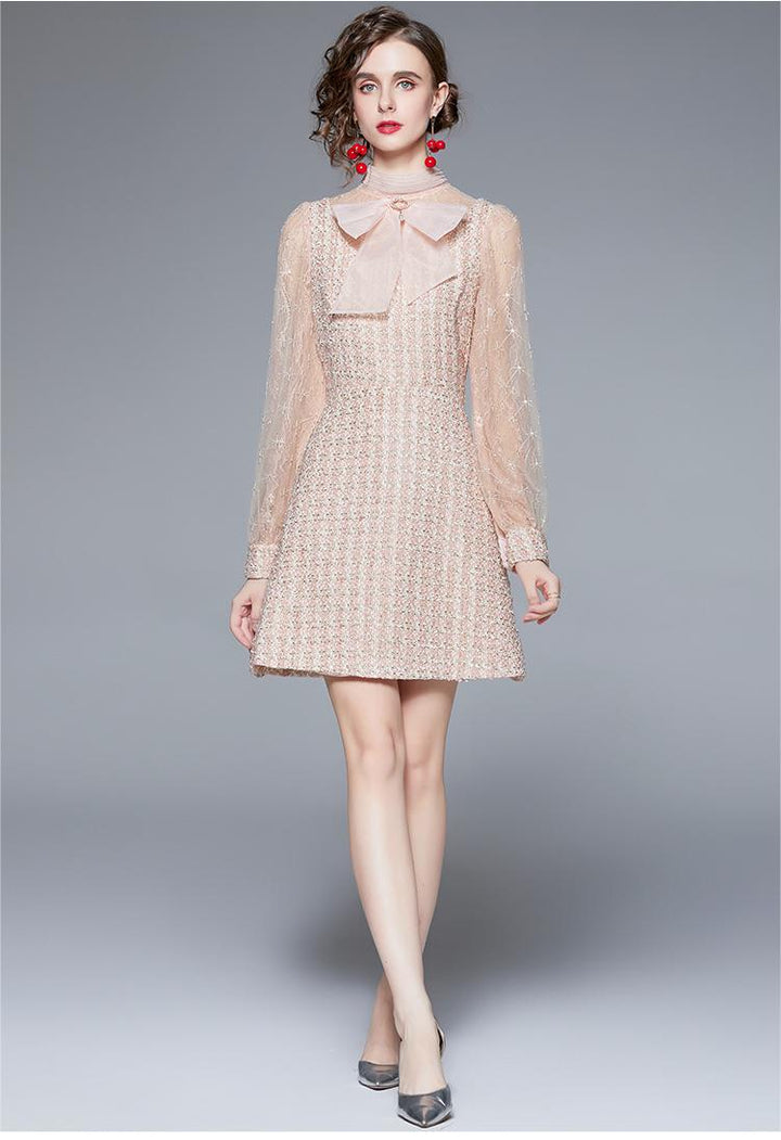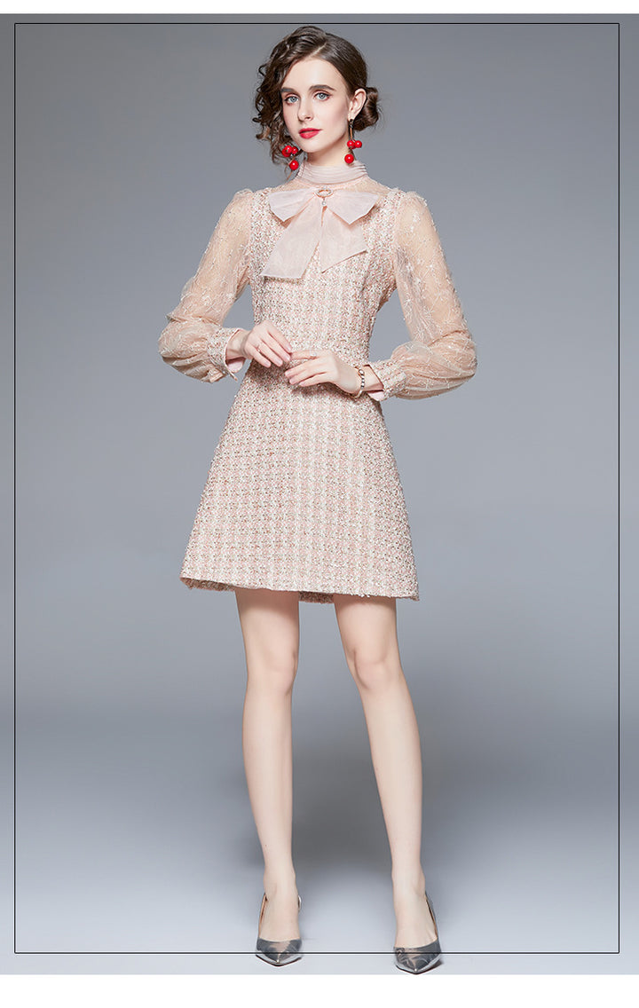 Bow NeckLong Sleeve French Dress