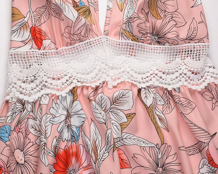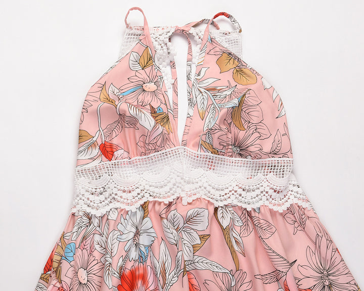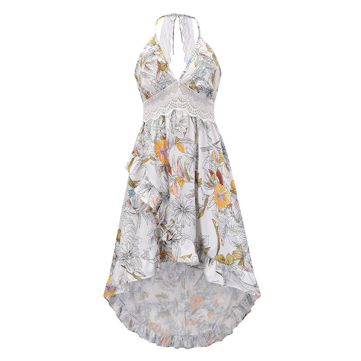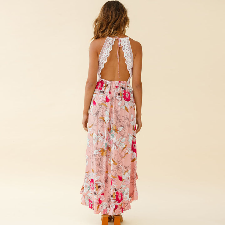 Deep V Sexy Beach Hollow Lace Suspender Irregular Dress