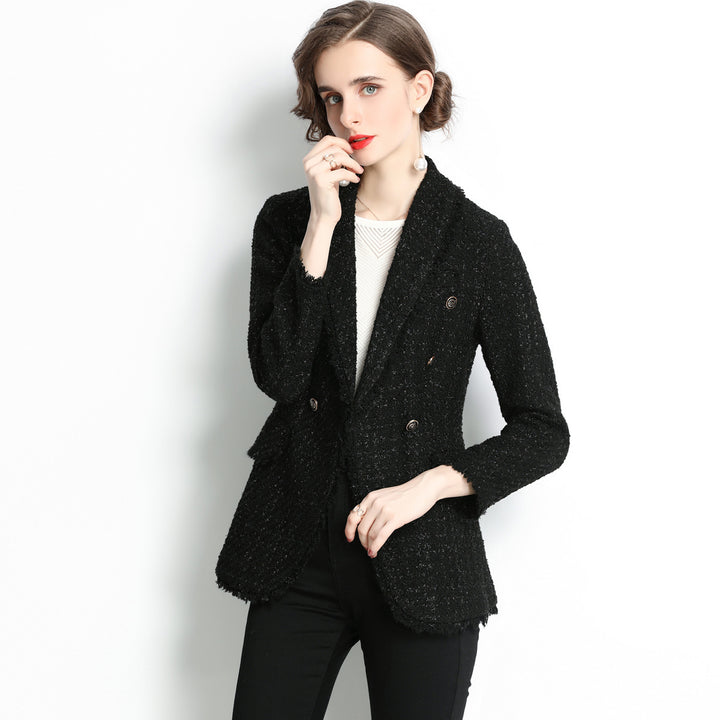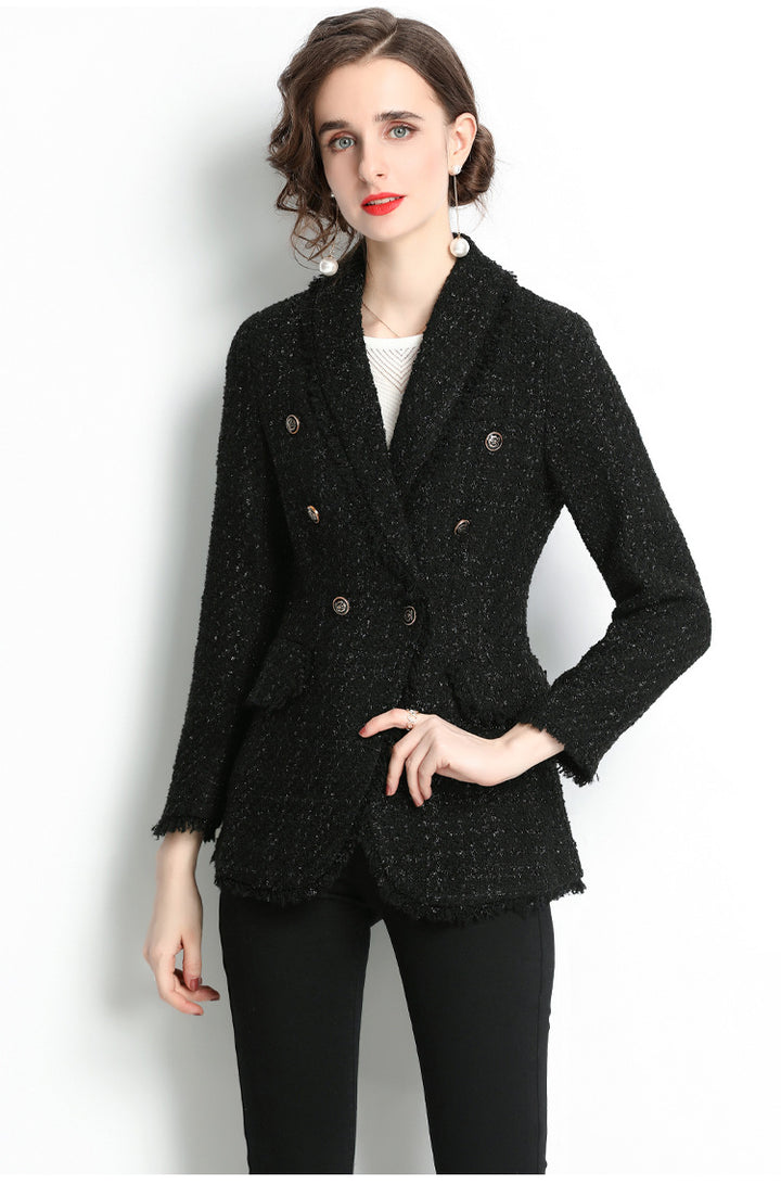 Double Breasted Slim Tweed Blazer Coat