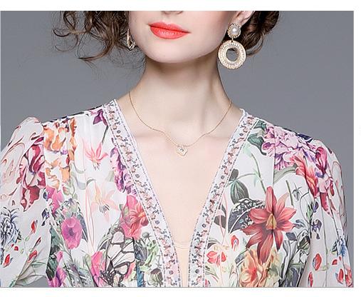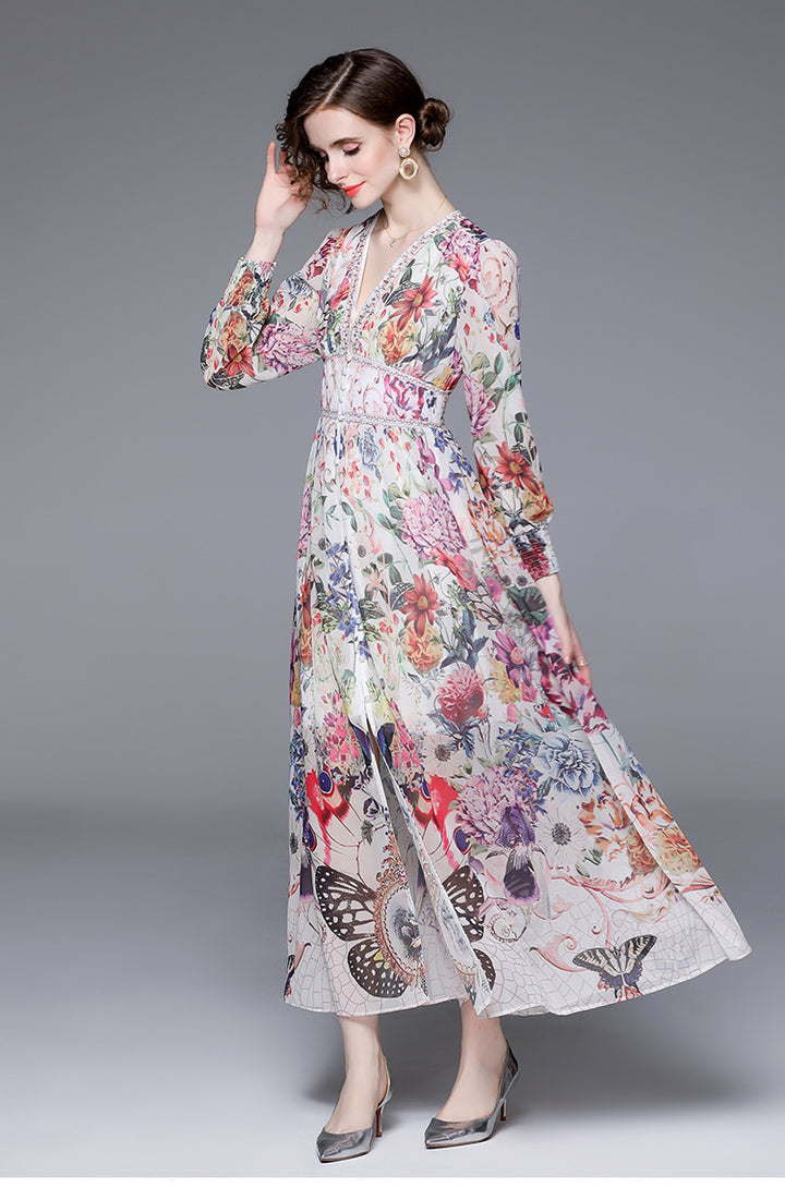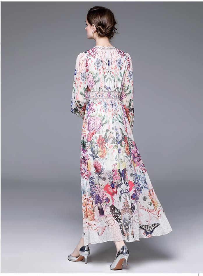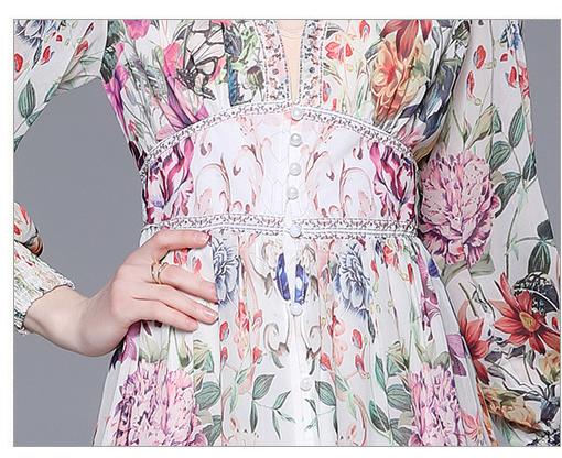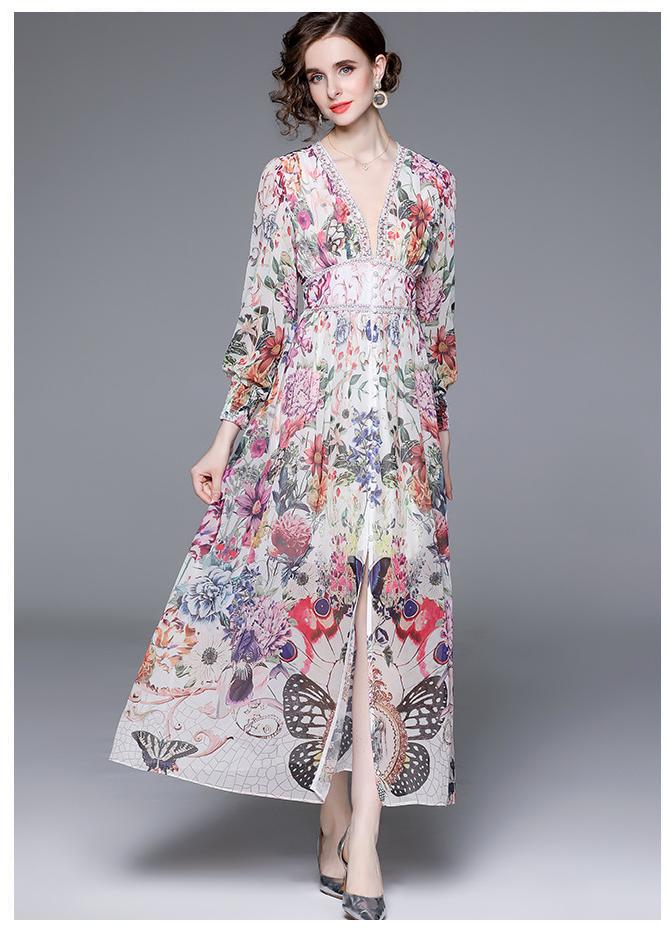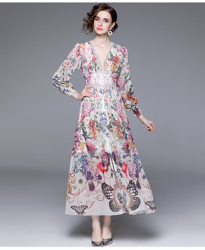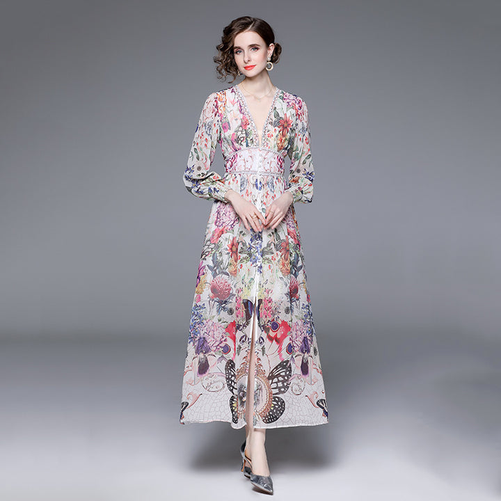 Early Spring Holiday V-neck Long Sleeve Printed Dress