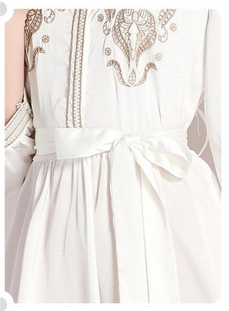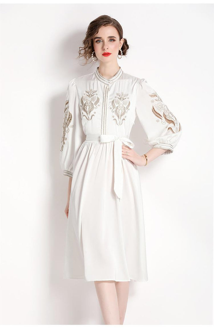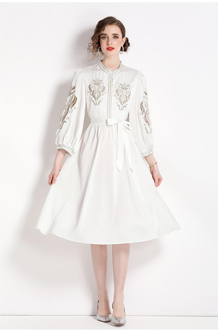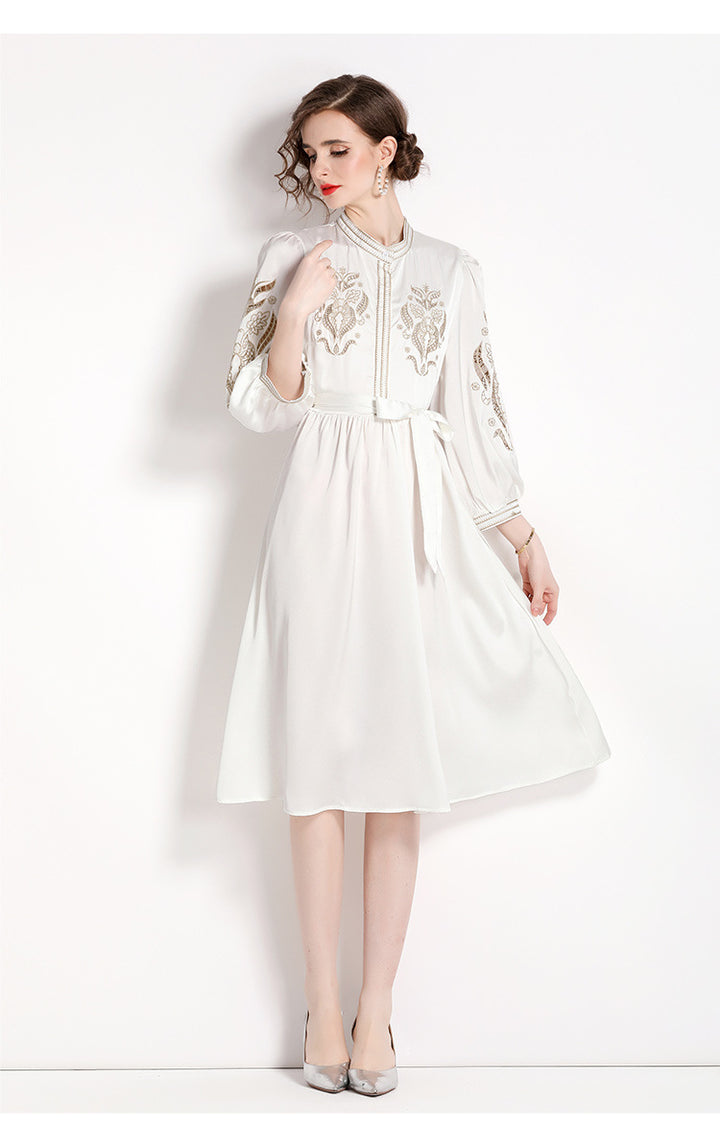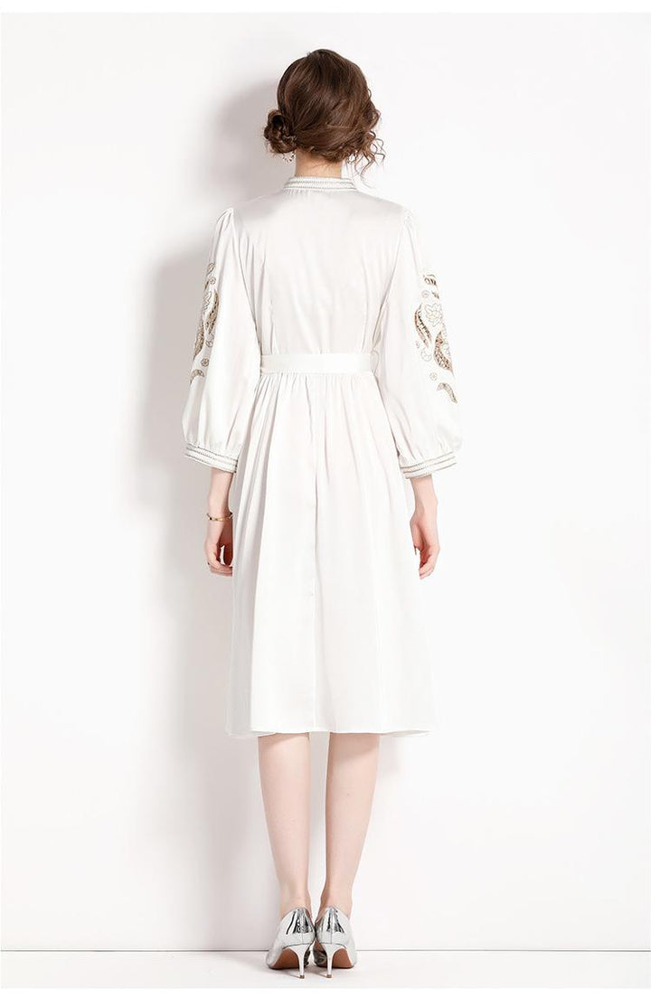 Heavy Embroidered Lantern Sleeve Slim Dress
