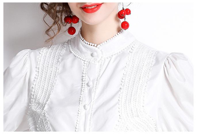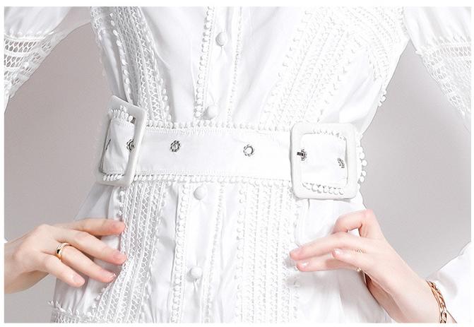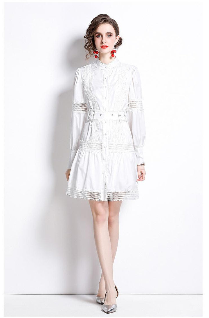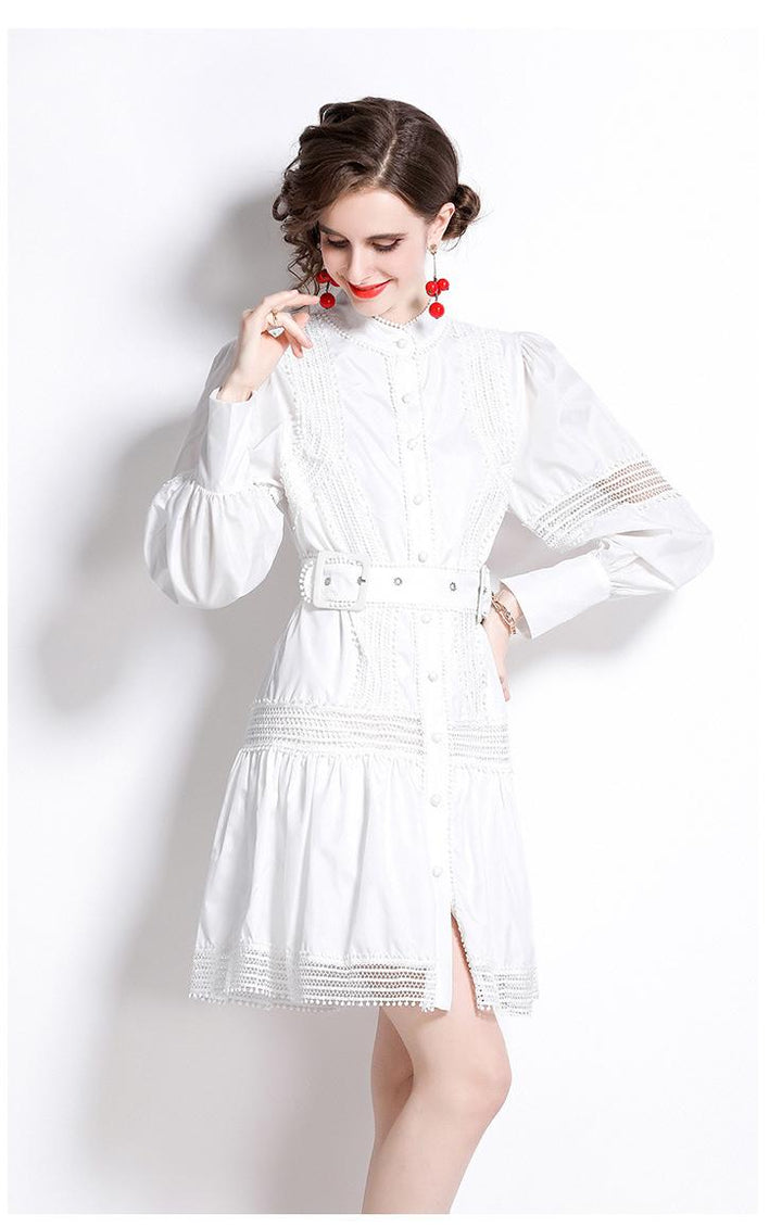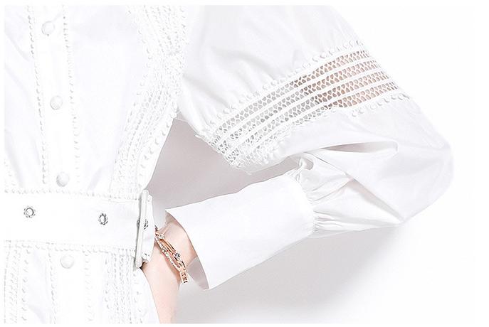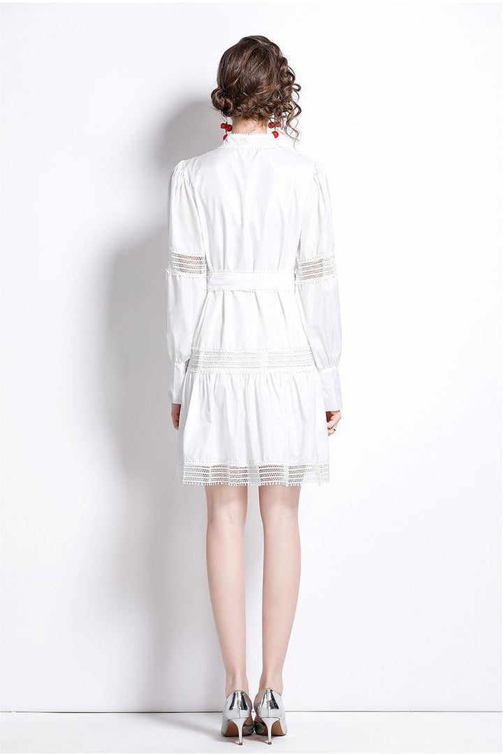 Thin Lace Patchwork Lantern Sleeve White Dress