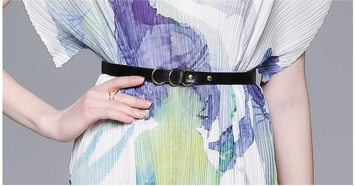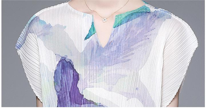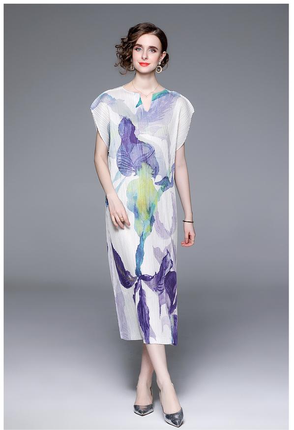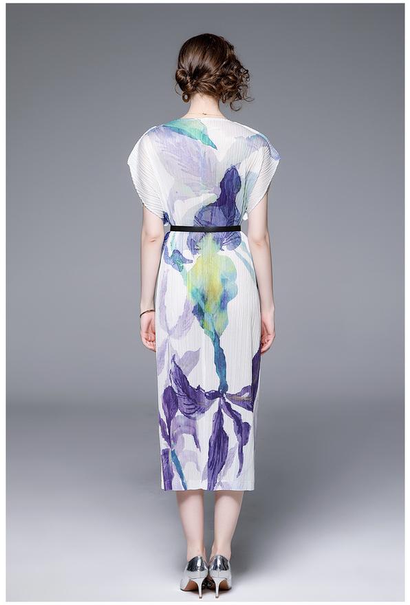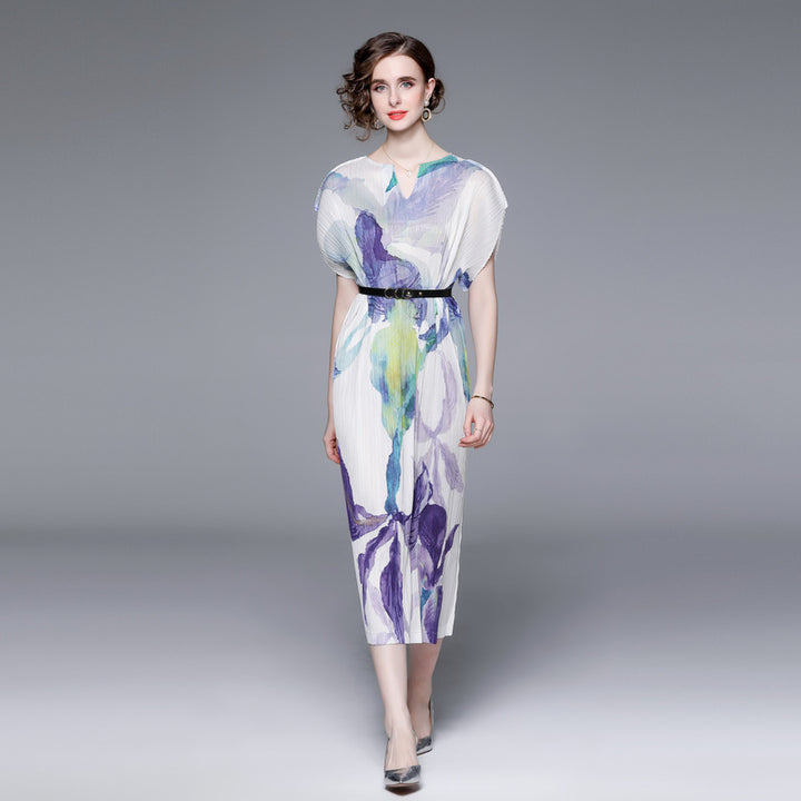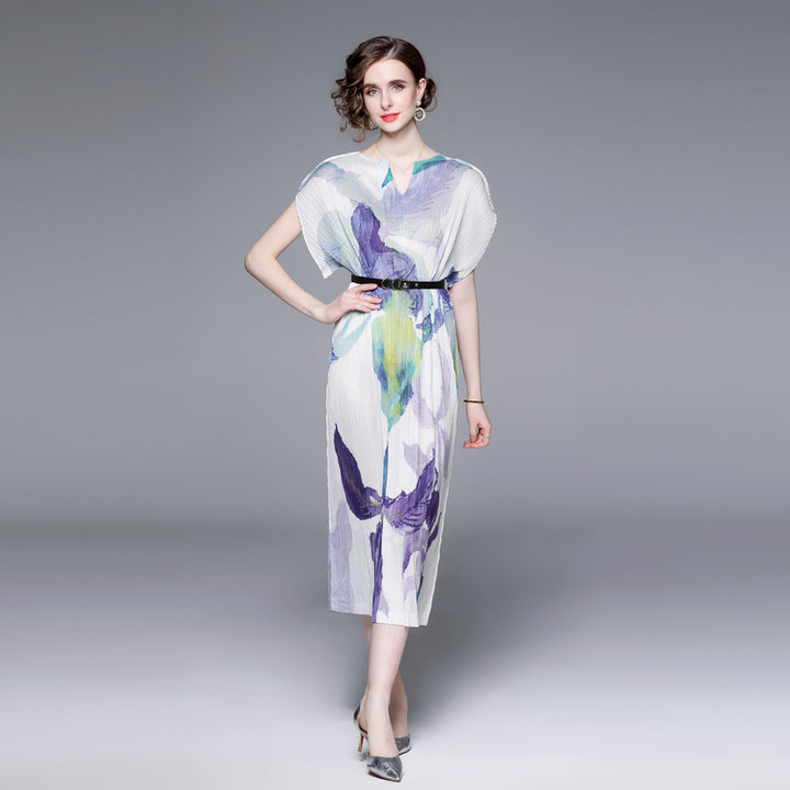 Elegant Temperament V-Neck Printed Pleats Dress