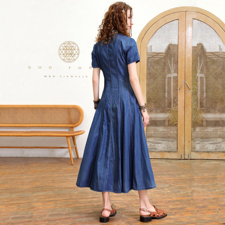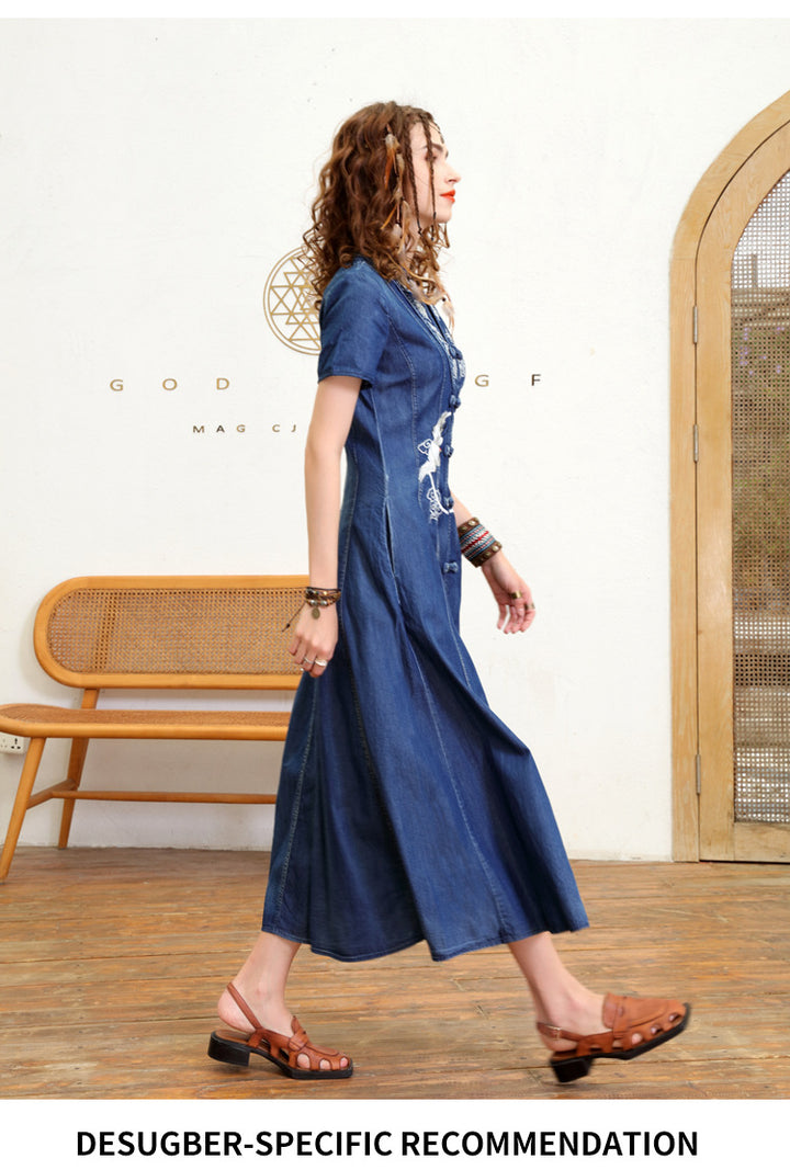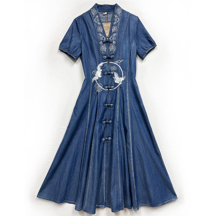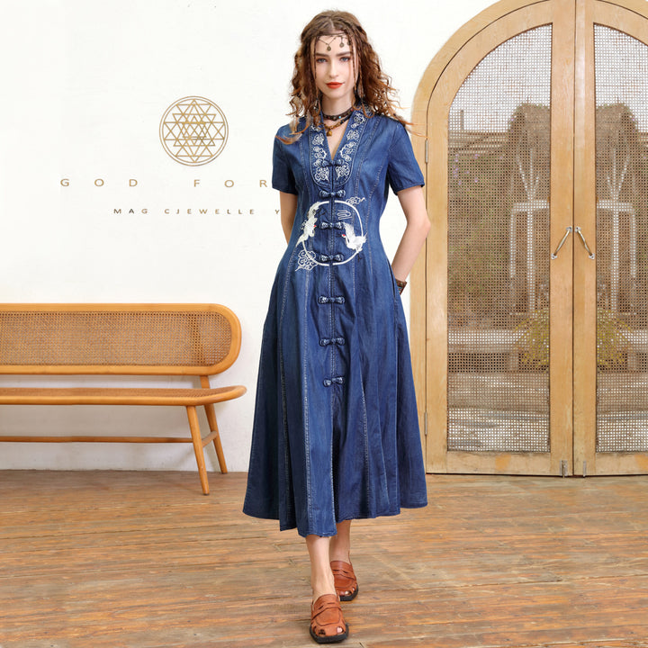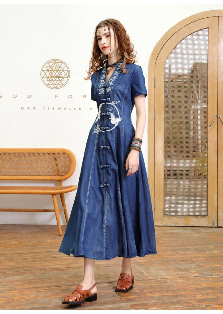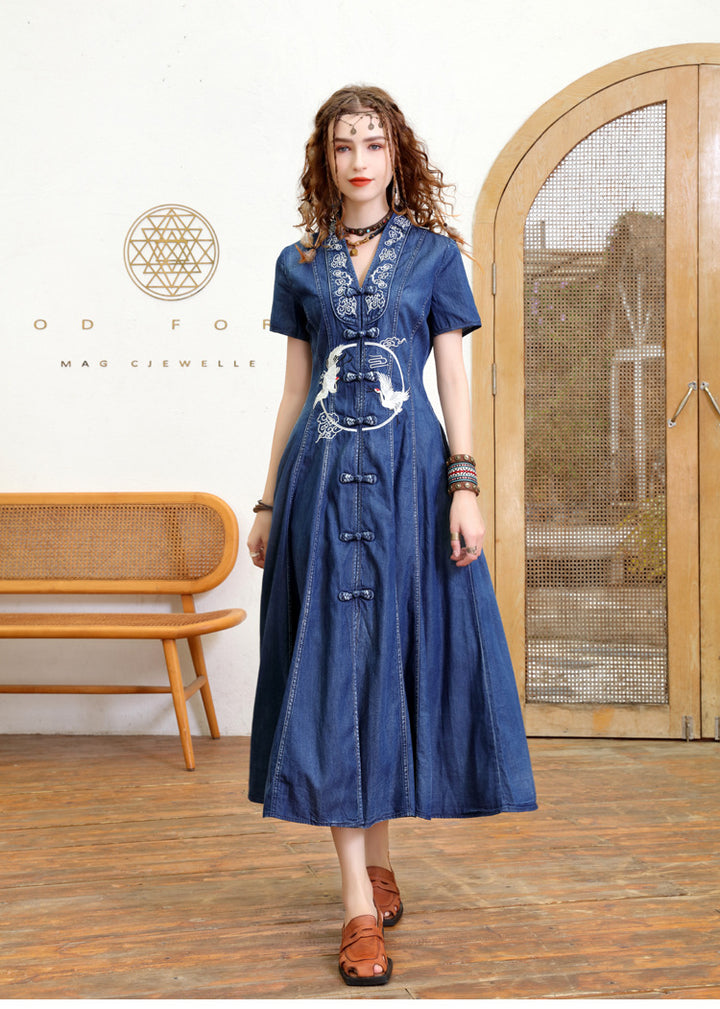 Embroidered Bodice Dress for Slimming
