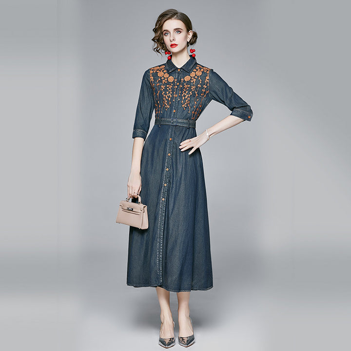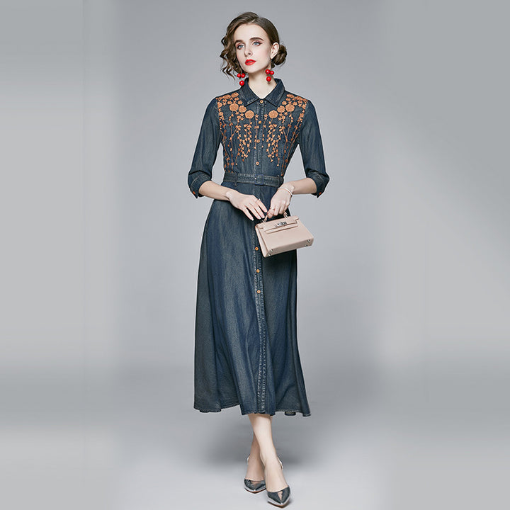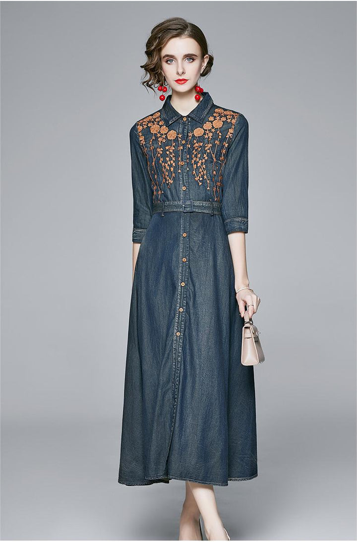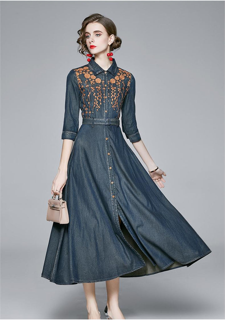 Embroidered Denim Dress