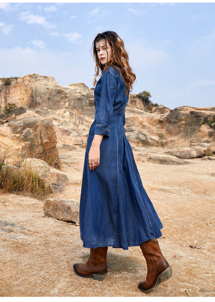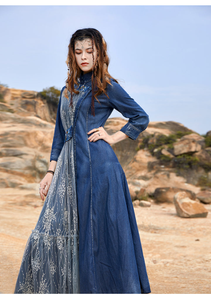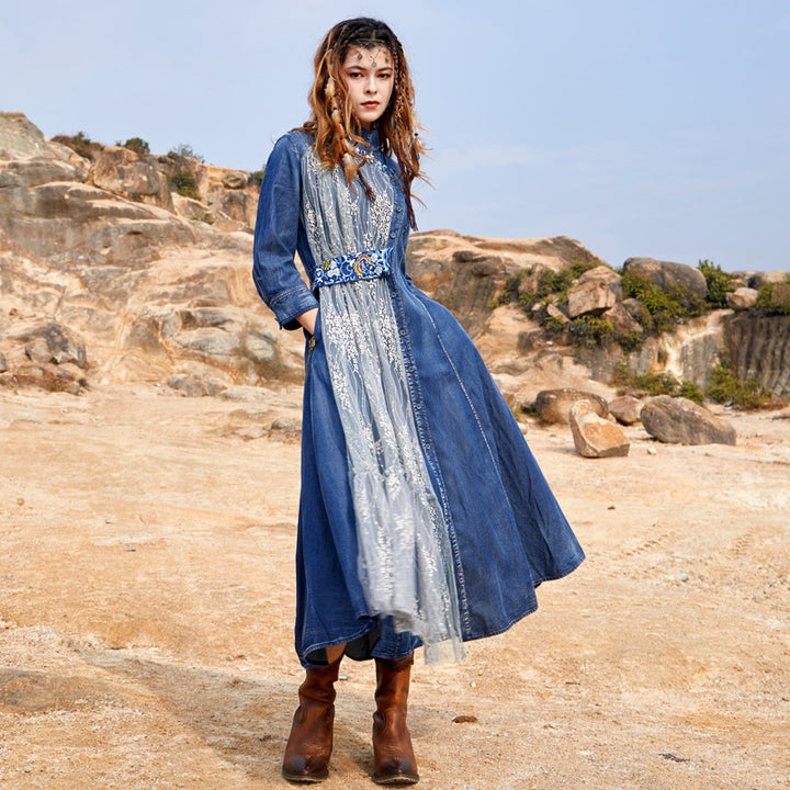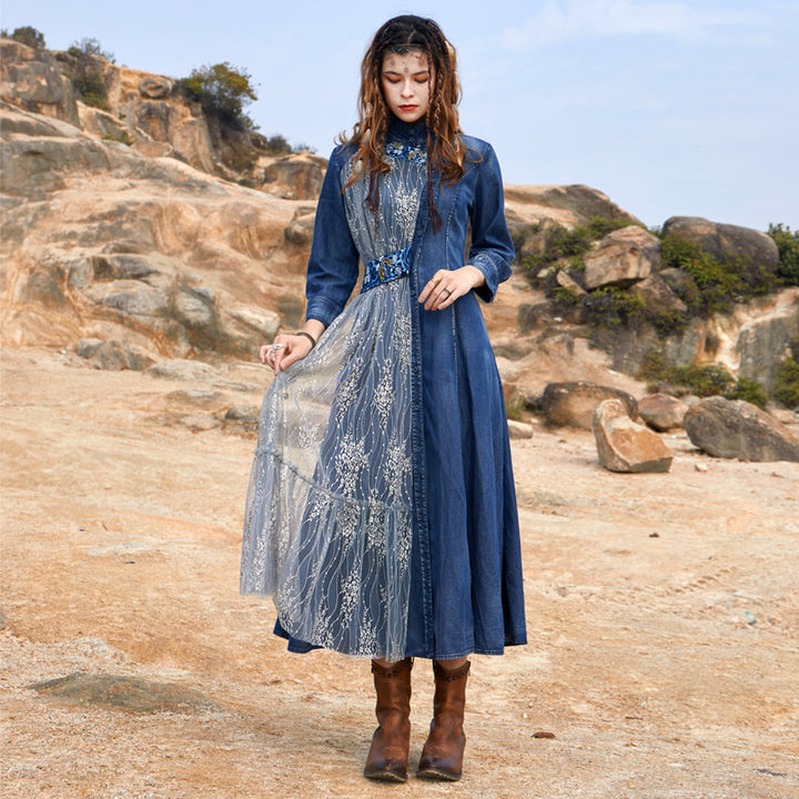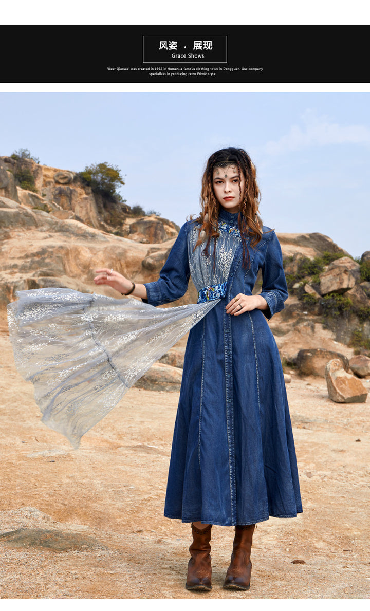 Embroidered Sweet Dress French Vintage Full-Length Skirt with Waist Tucked in