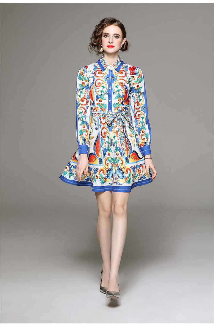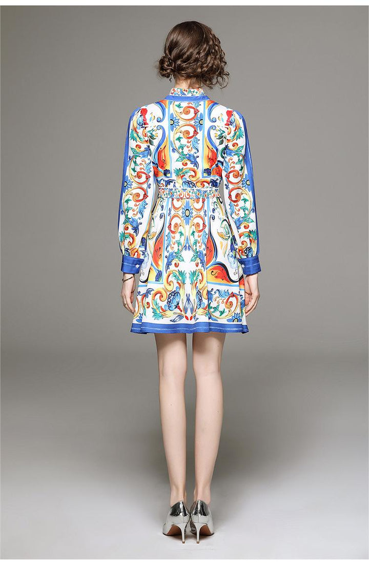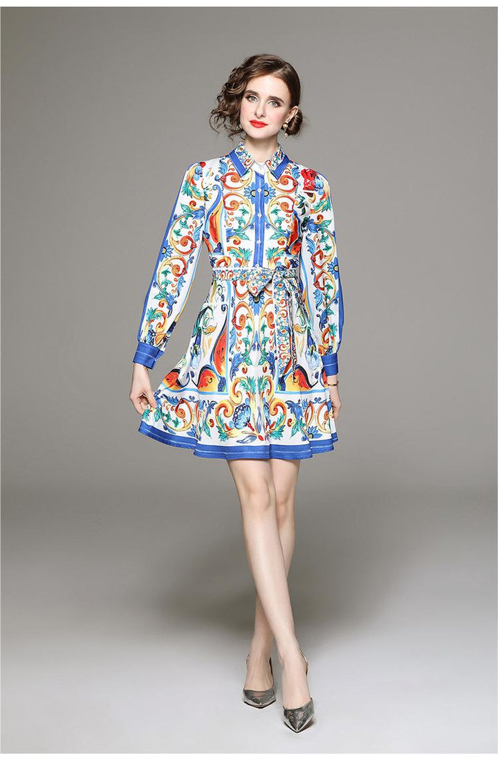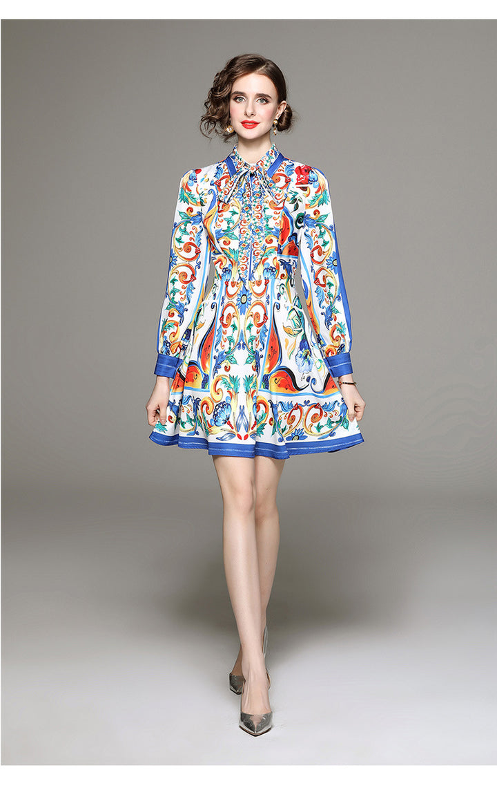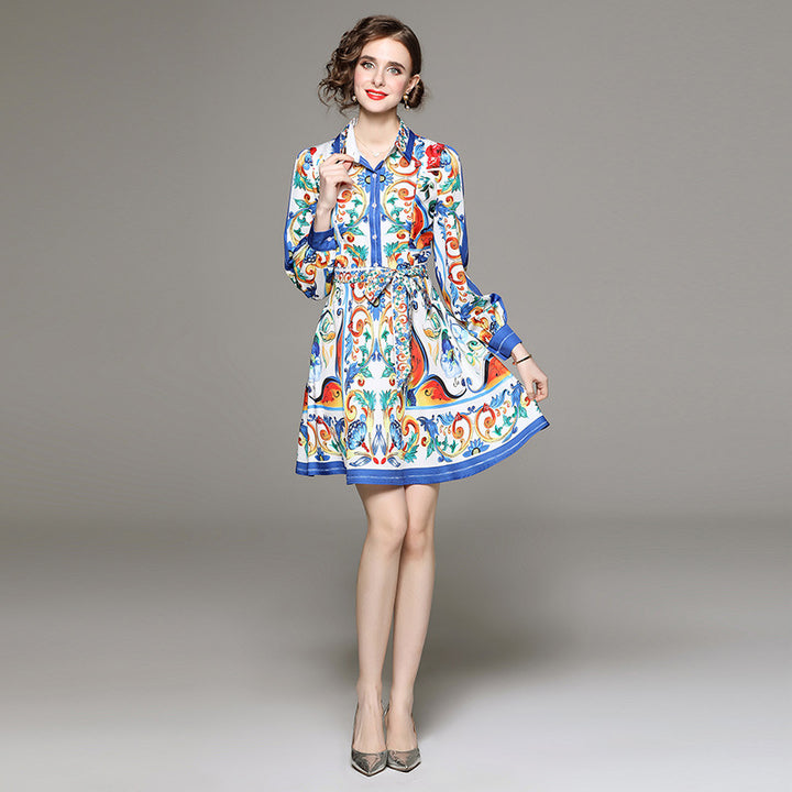 Fashion All-in-One Collection Waist Slimming Palace Style Positioning Printed Dress