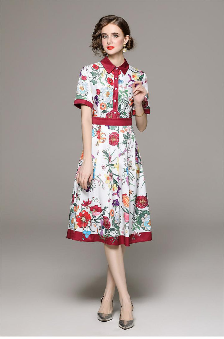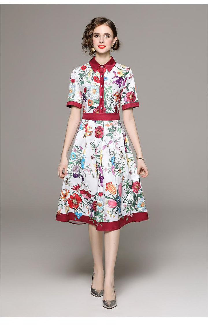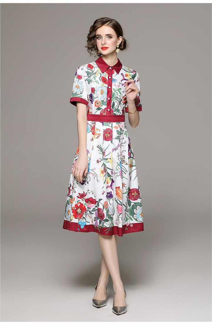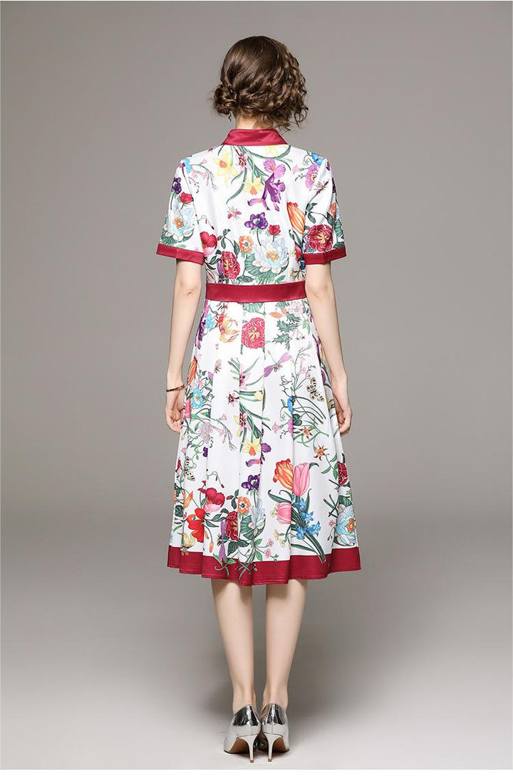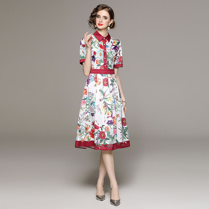 Fashion All-in-One Collection Waist Slimming Positioning Printed Short-Sleeved Dress