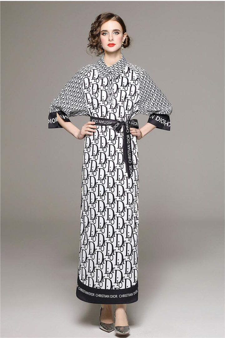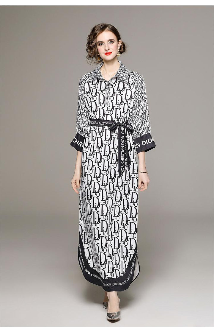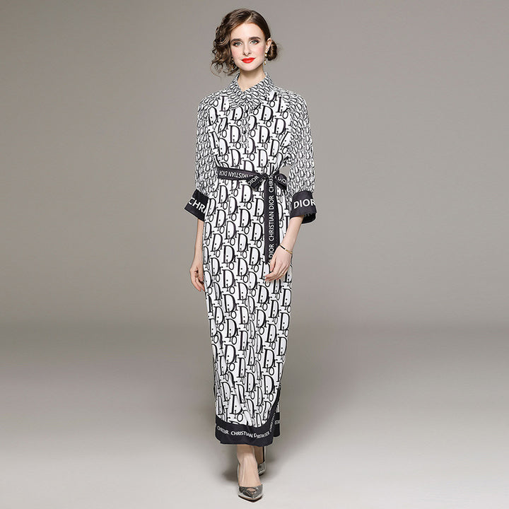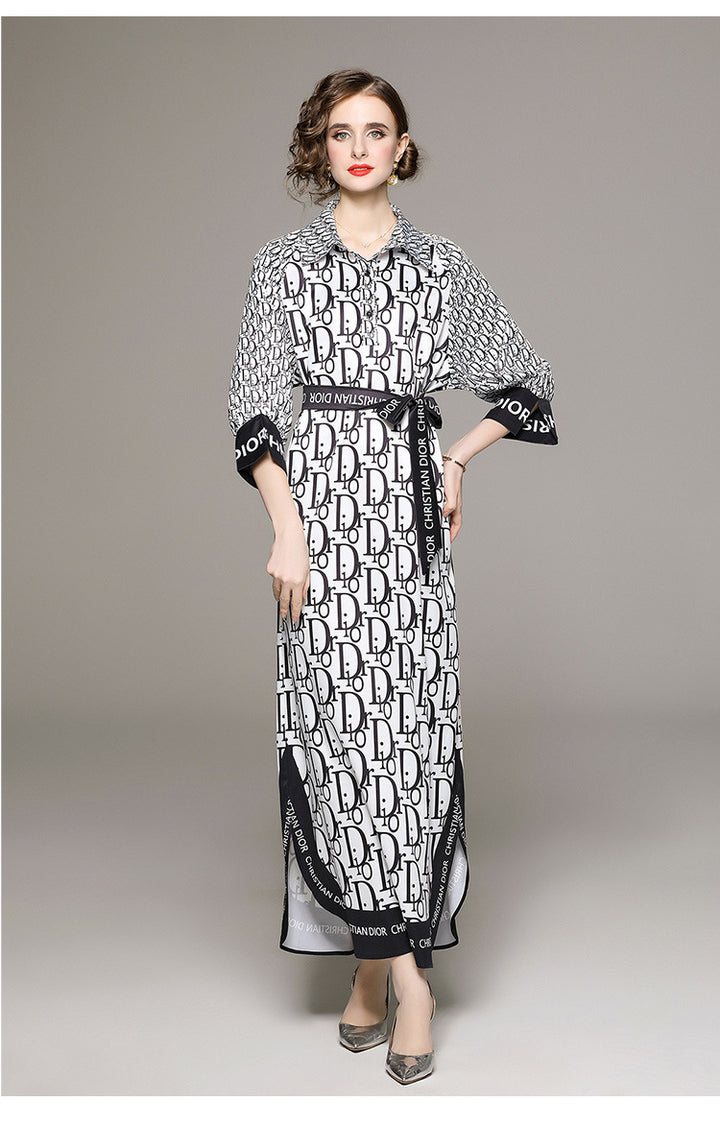 Fashion Matching Shirt Collar Loose Lace-Up Dress