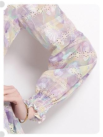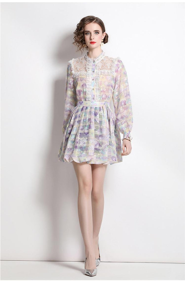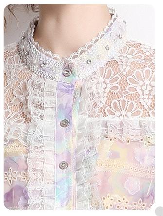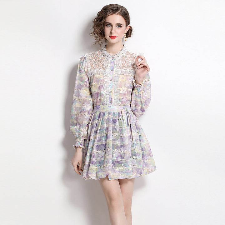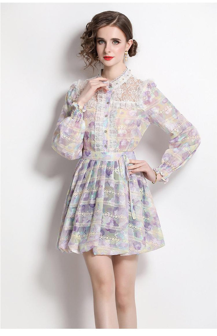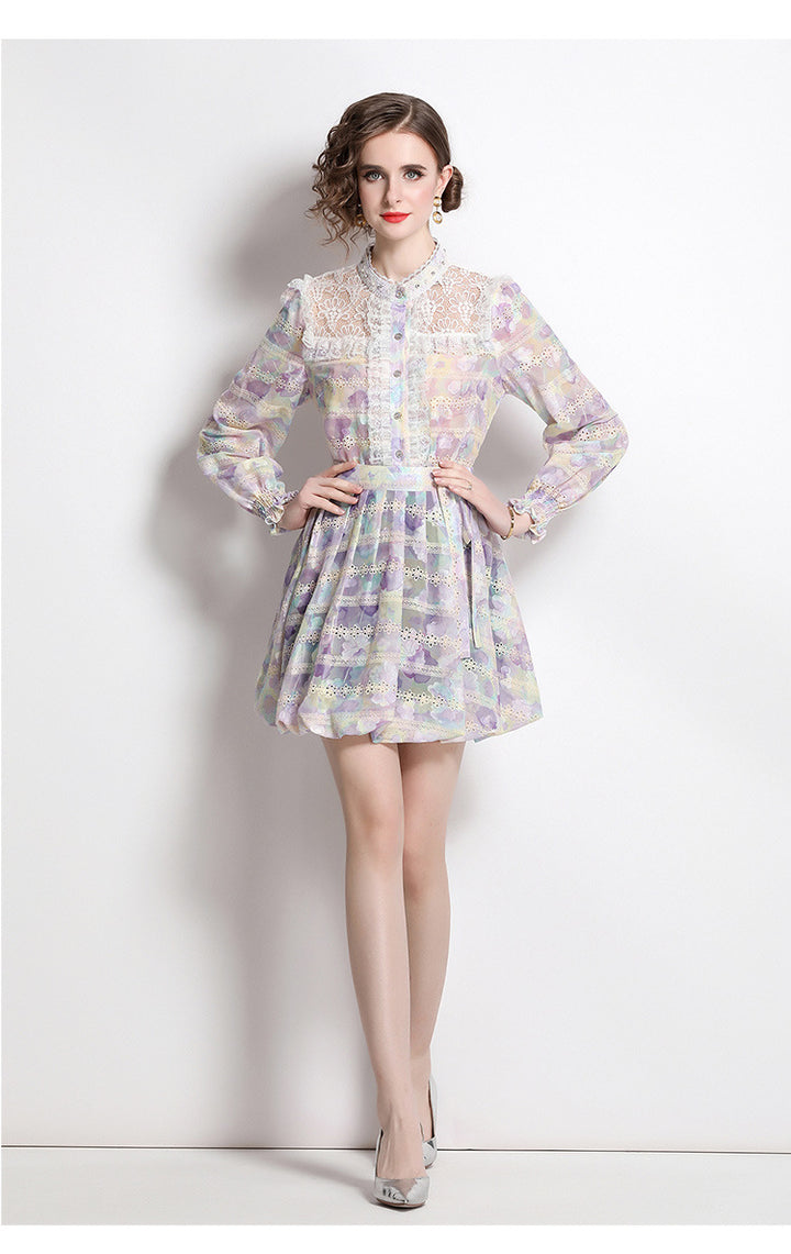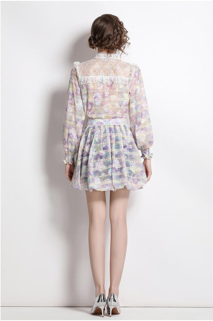 Fashion Printed Embroidery Patchwork Lace Lace Long-Sleeved Shirt Half Skirt Suit Skirt