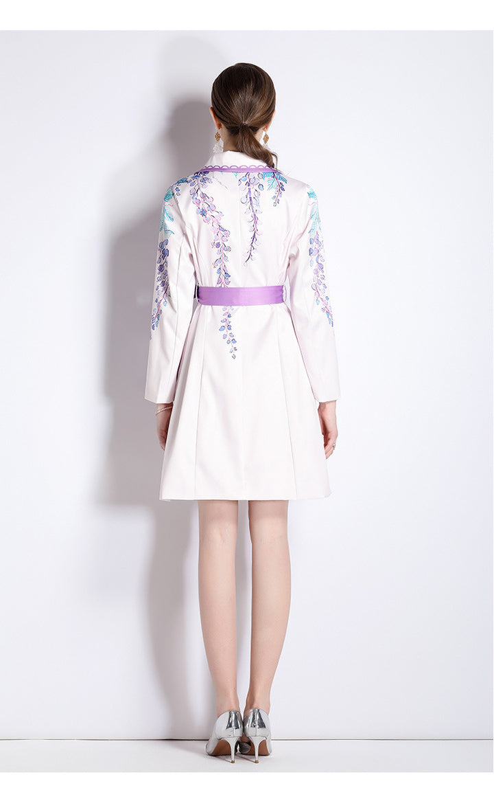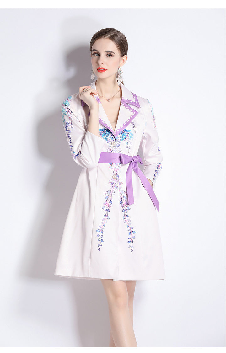Fashion Printed Suit Collar Coat Temperament Waist Slimming Breasted Mid-Length Trench Coat