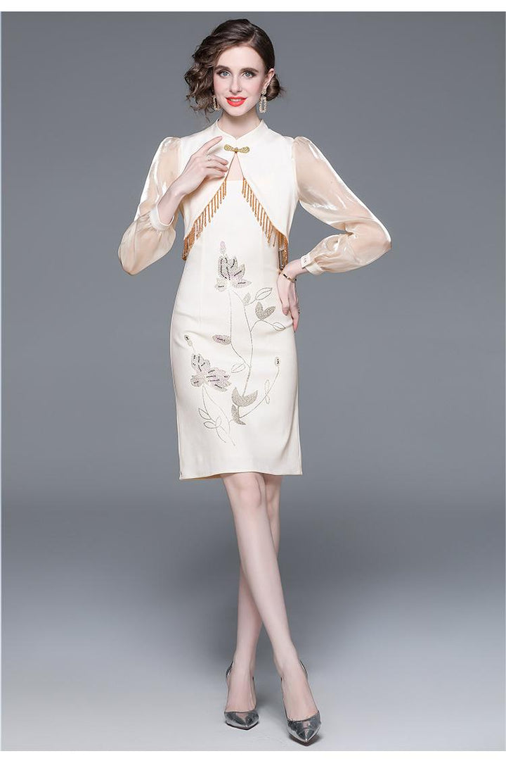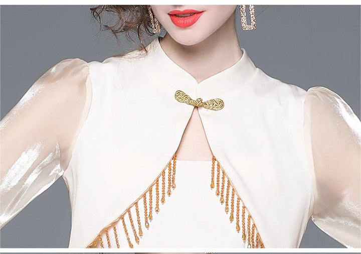 Fashion Temperament Chinese Retro Waist Slimming Long-Sleeved Dress