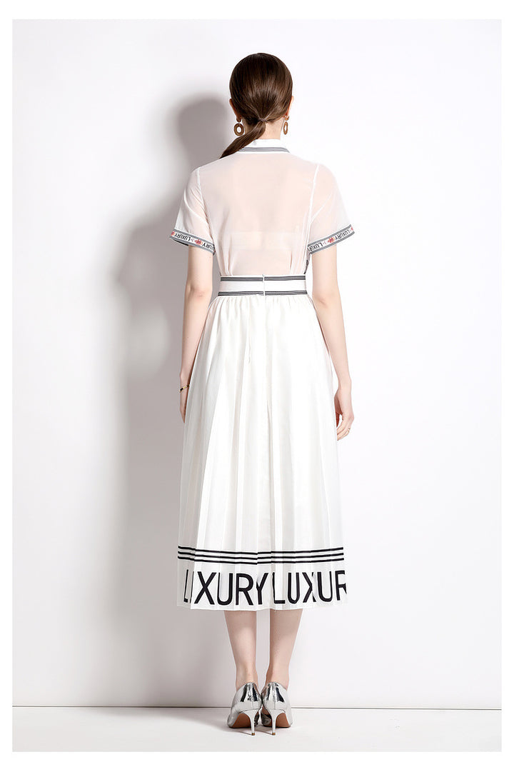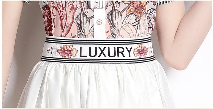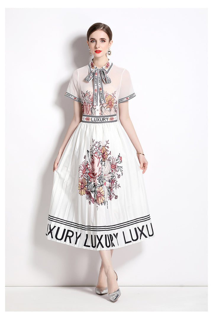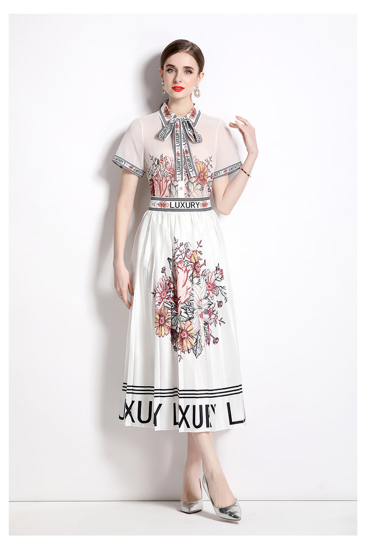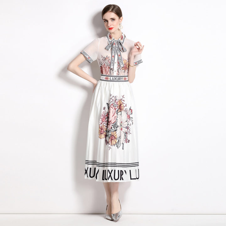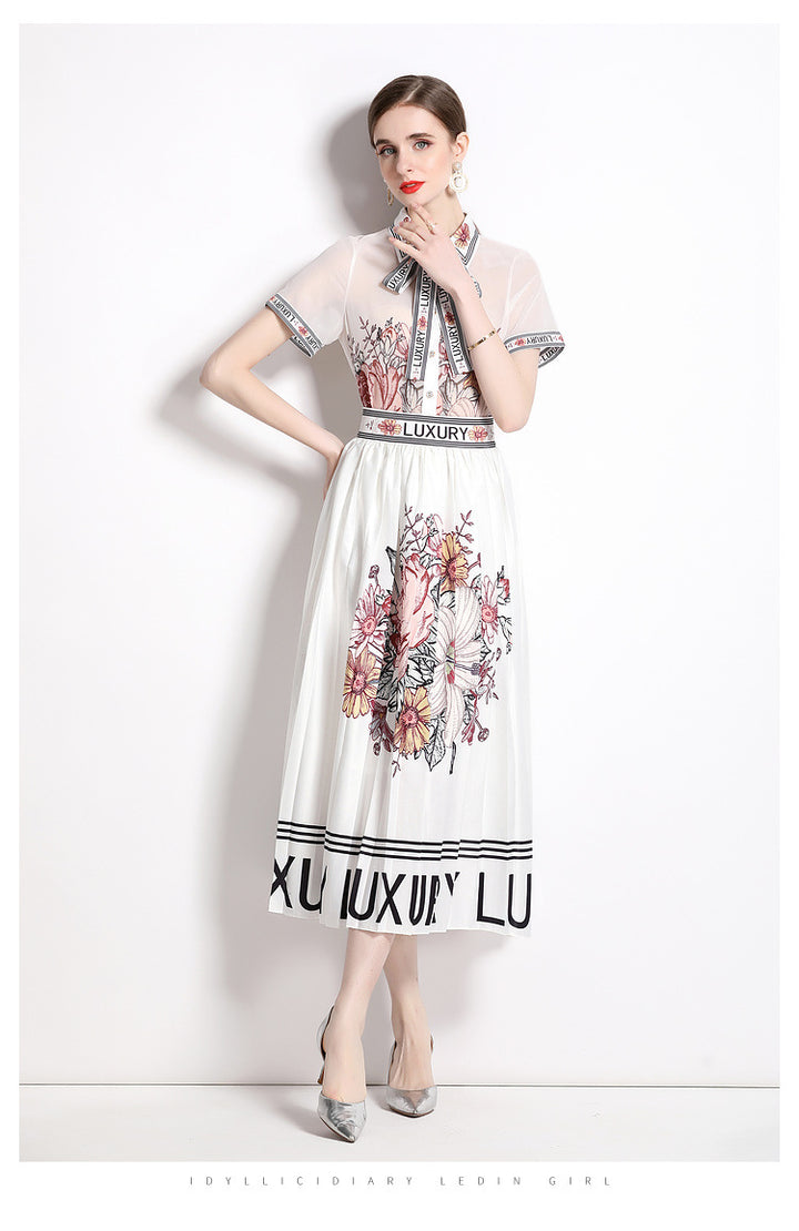 Fashion Vintage Printed Lapel Shirt Large Swing Pleated Skirt Fashion Suit
