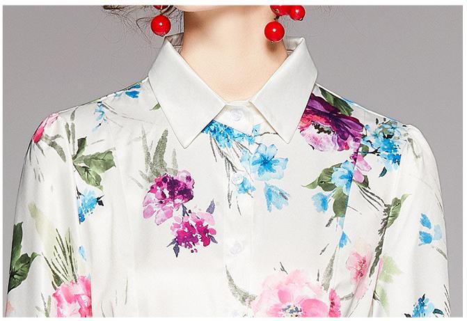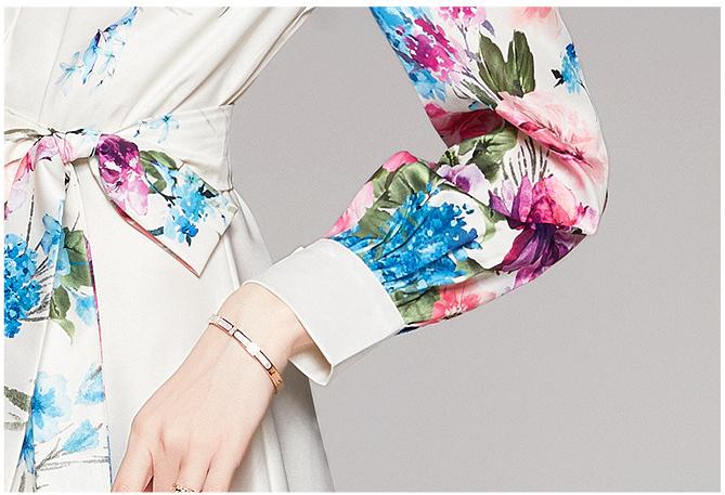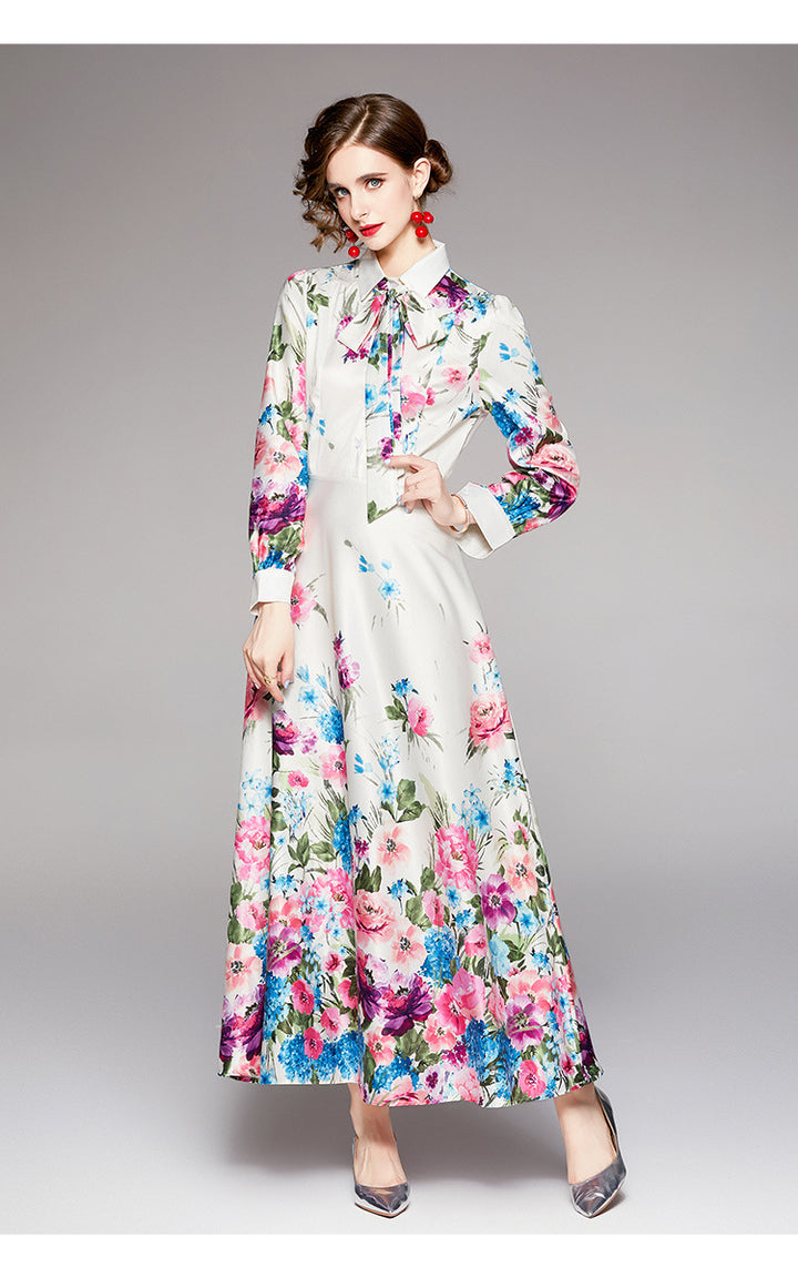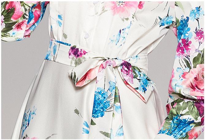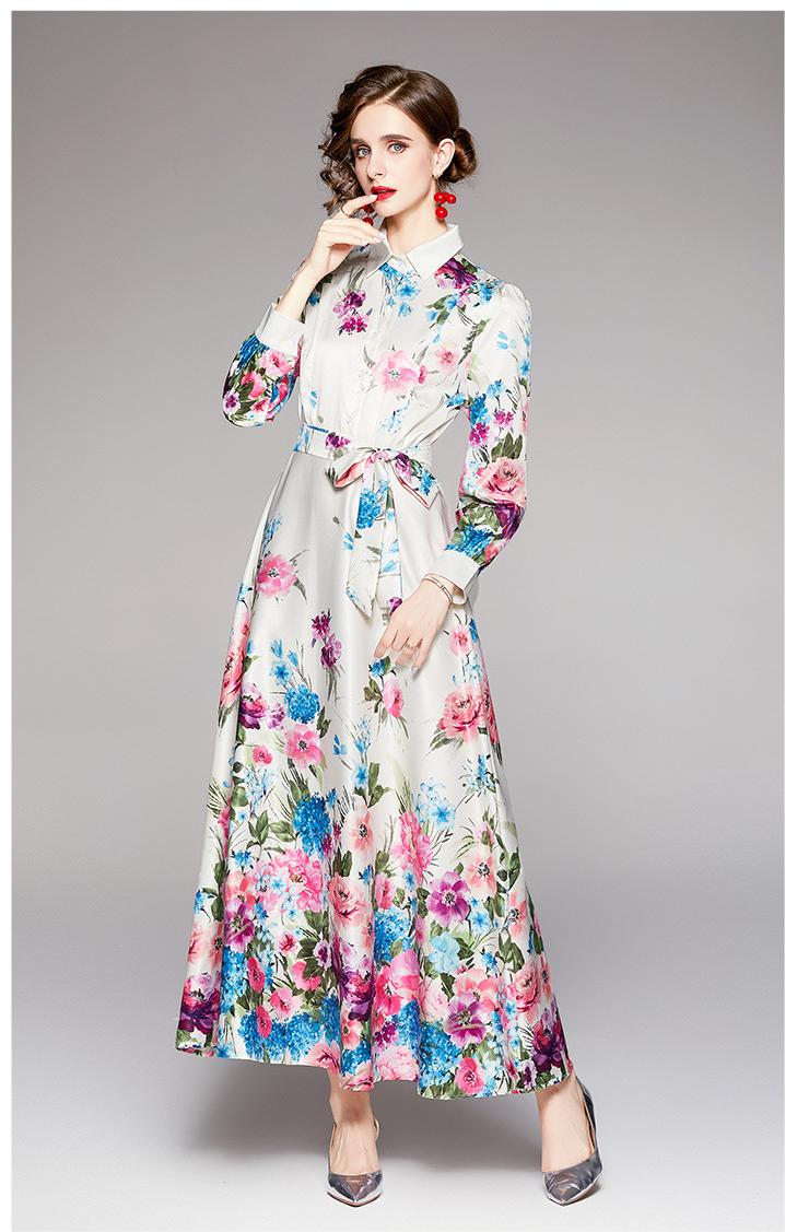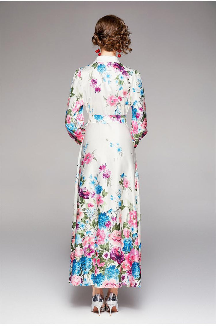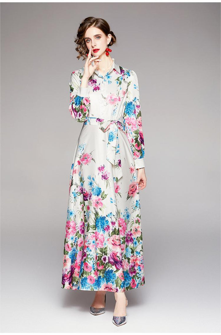 Fashion Waist-Close Thin Belt Positioning Printed Dress
