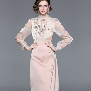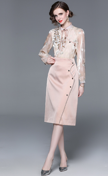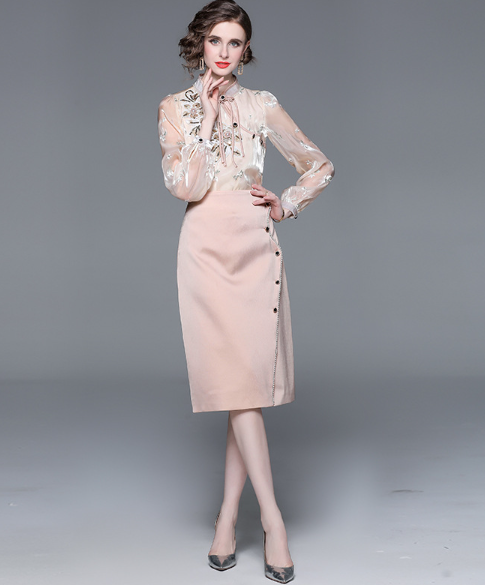 French Style Slim Fit and Slim Fashion Women's Blouse and Skirt Set