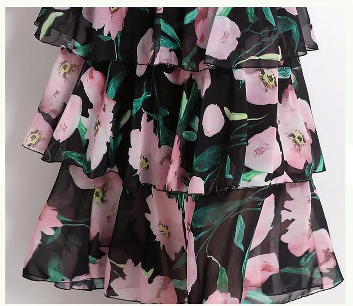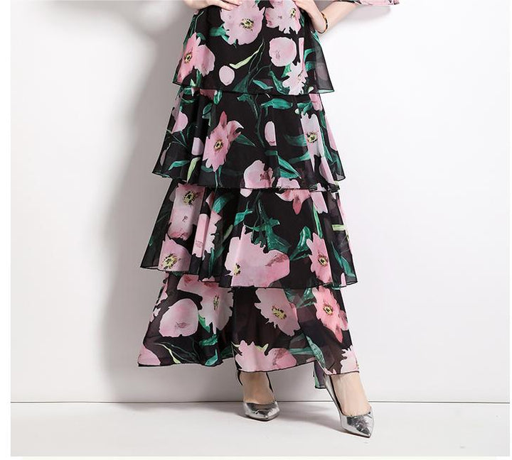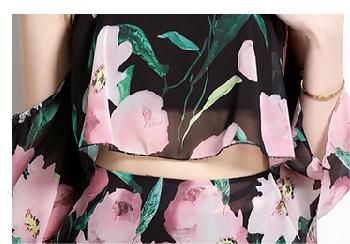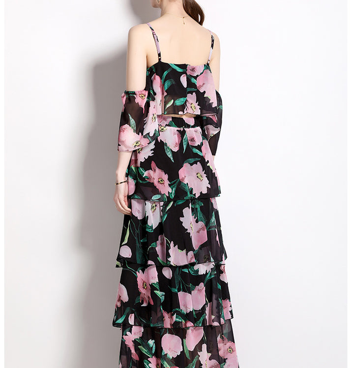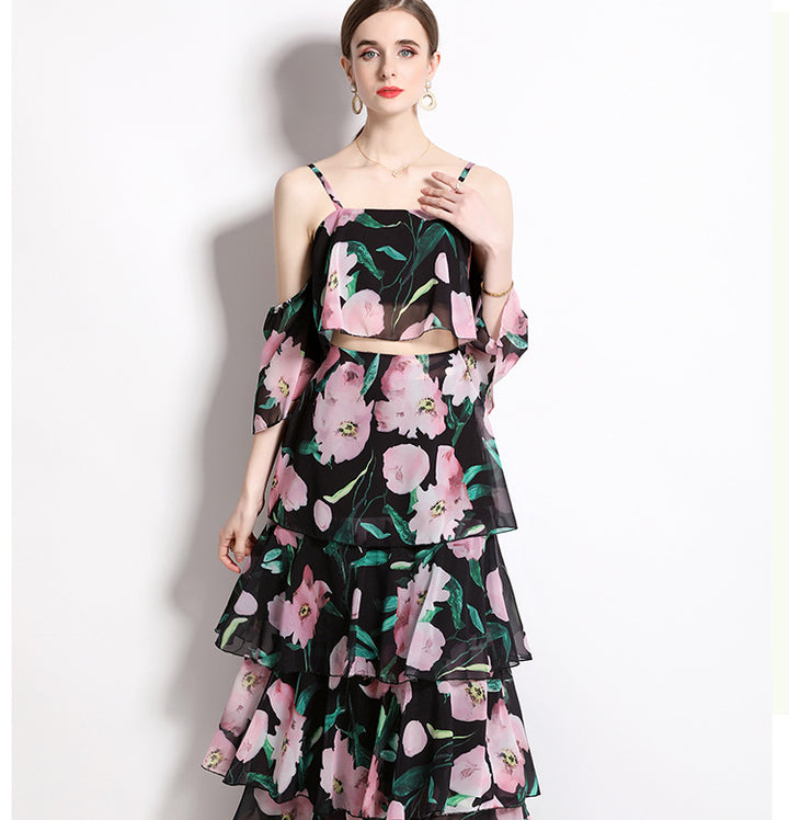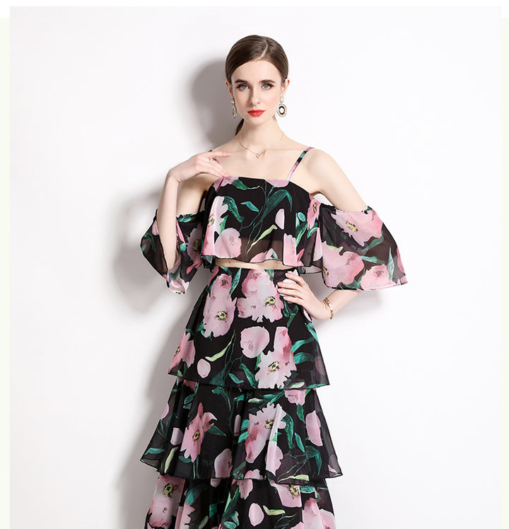 Holiday Snowstorm Spun Printed Halter with a Line Neck Top and Long Skirt Two-Piece Set