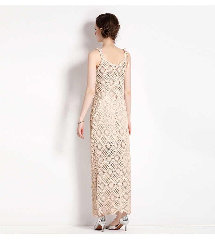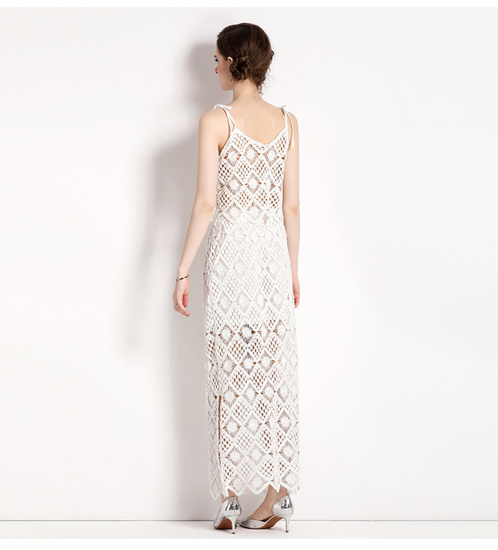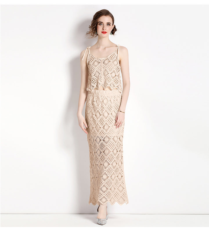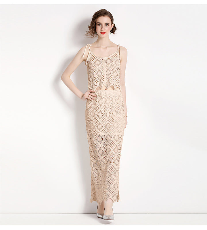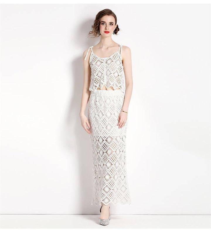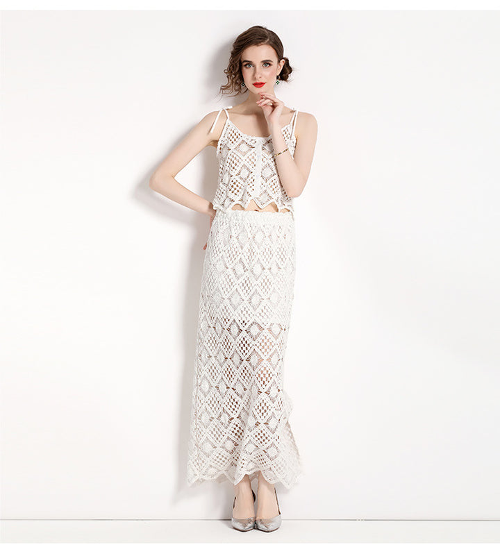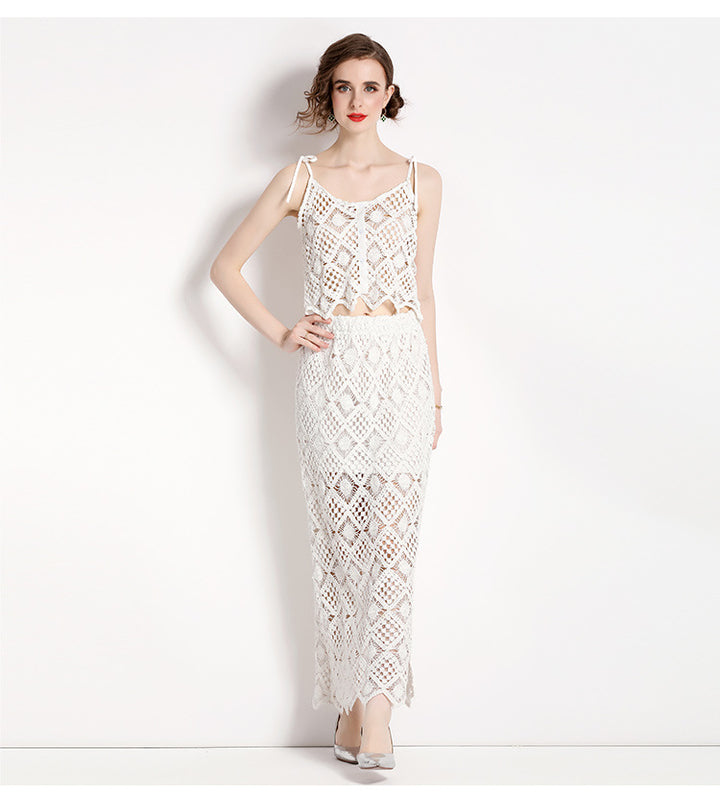 Hook Floral Embroidery Lace Hollowed Out Short Style Suspender and Bag Hip Split Half Dkirt Two-Piece Set
