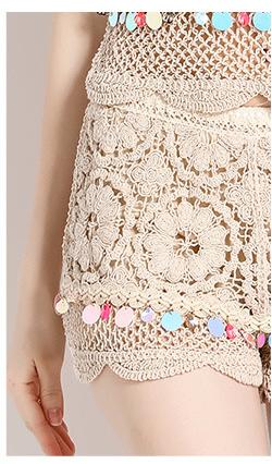 Hook Flower Suit Women's Short Style Sleeveless Vest and High Waist Shorts Two-Piece Set