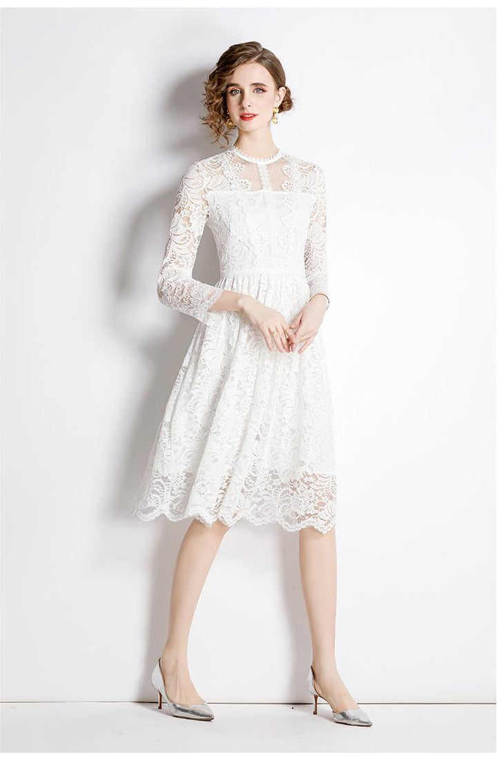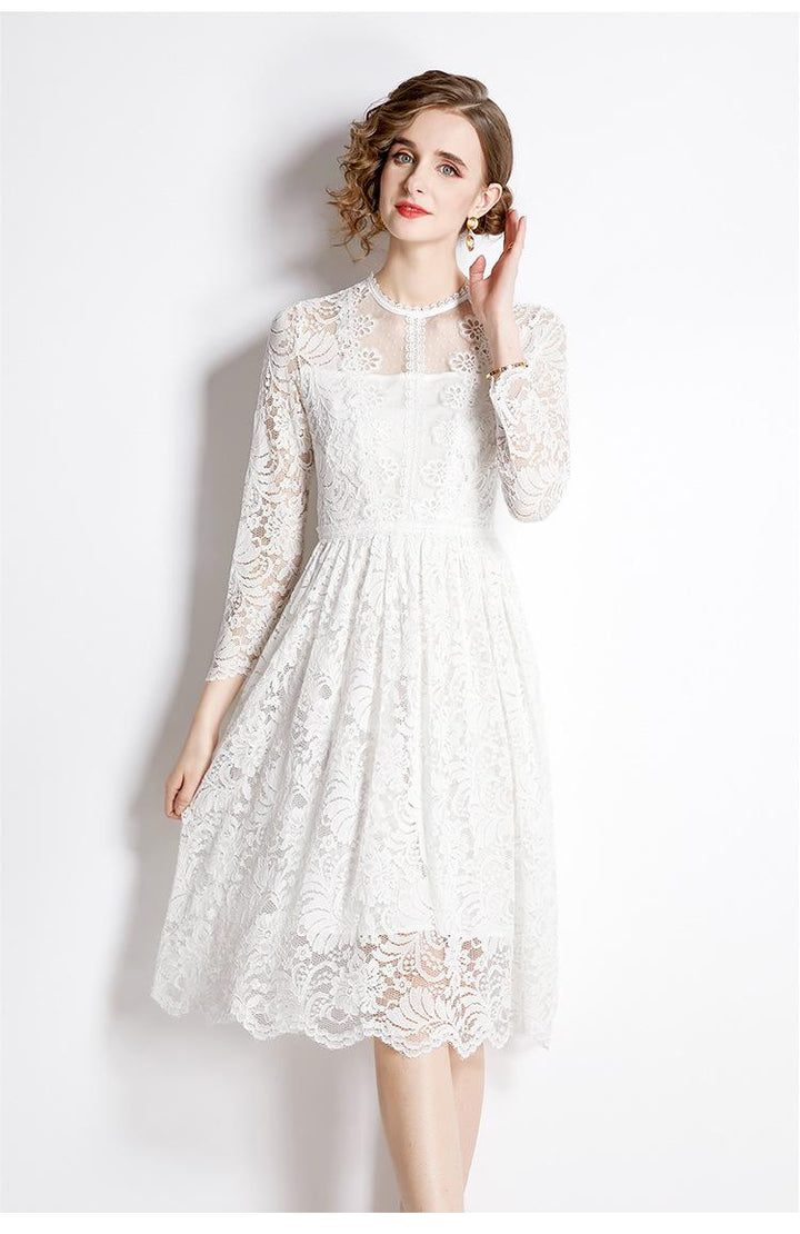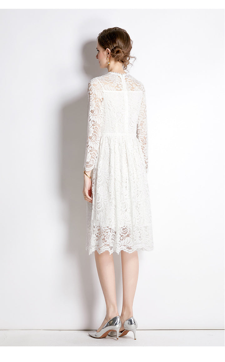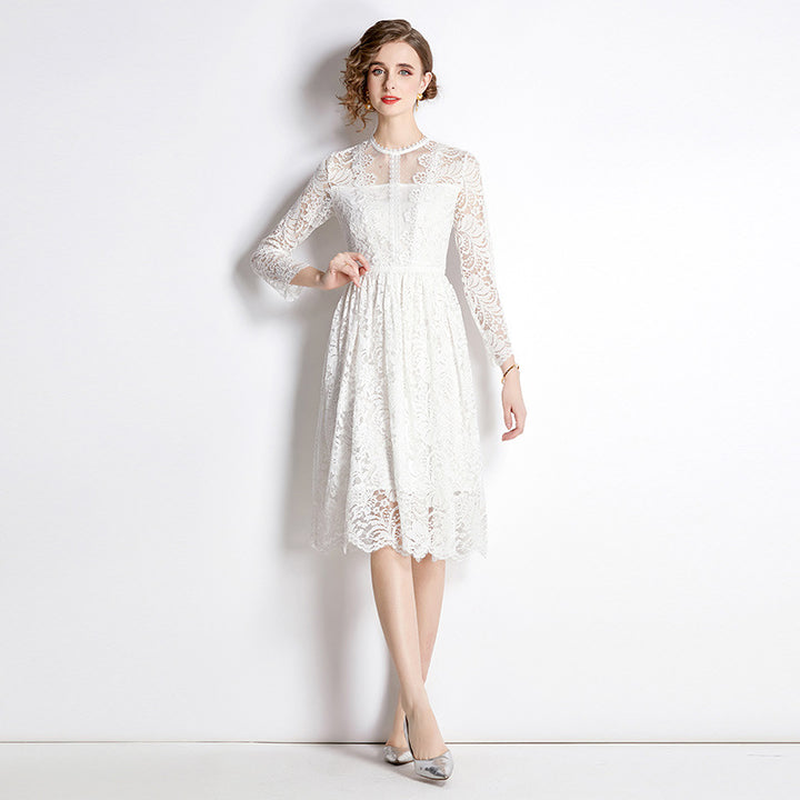 Lace Slim Lace Dress Temperament Show Thin Long Sleeve A-Line MIDI Skirt