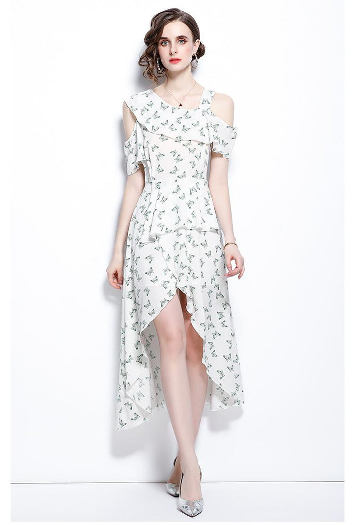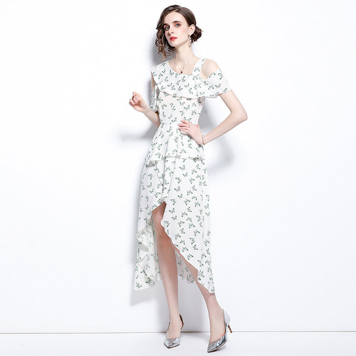 Light Luxury Small Person Summer Fashion Long Suspender Skirt Irregular Off-the-Shoulder Dress Female Summer