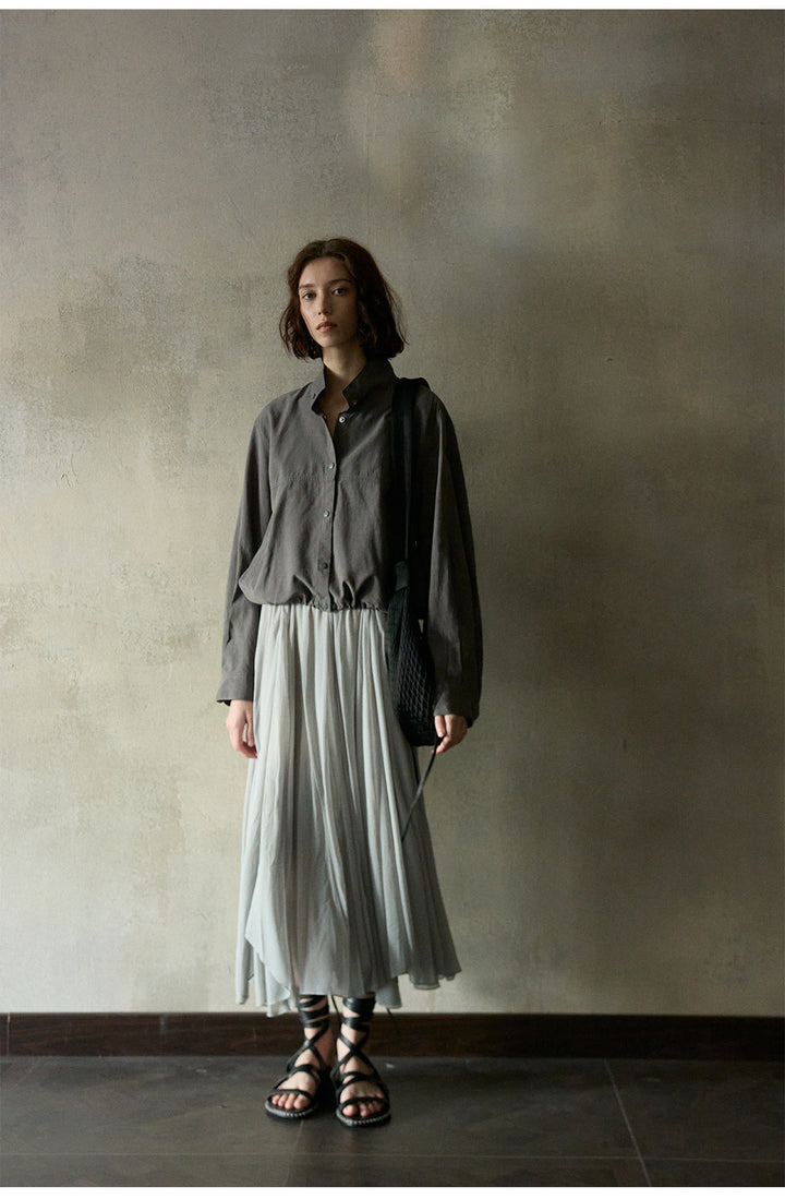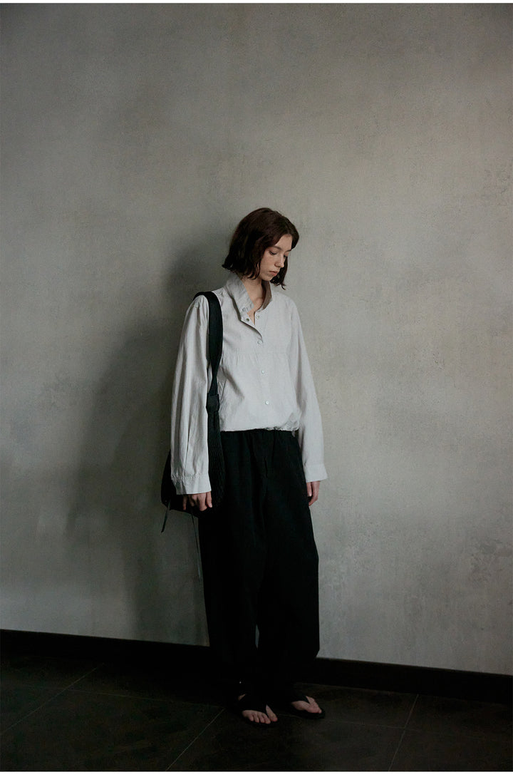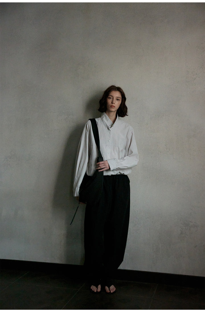 Linen Backbone, Fashionable And Simple Solid-color Button Women Blouse