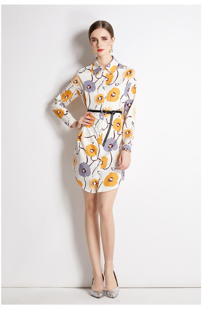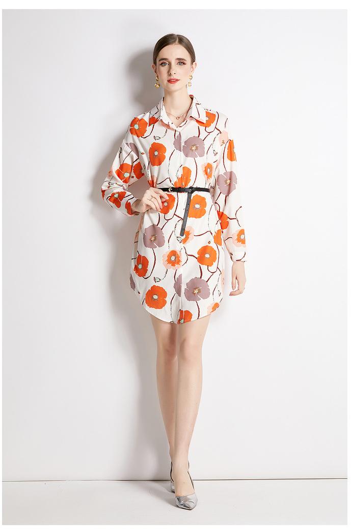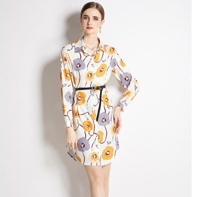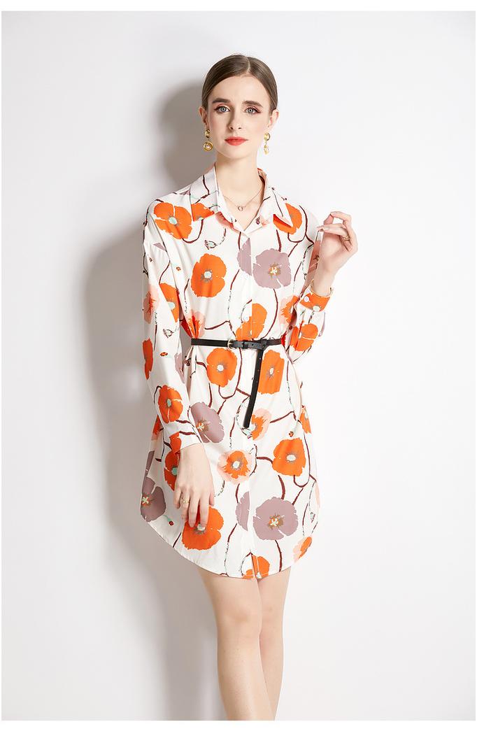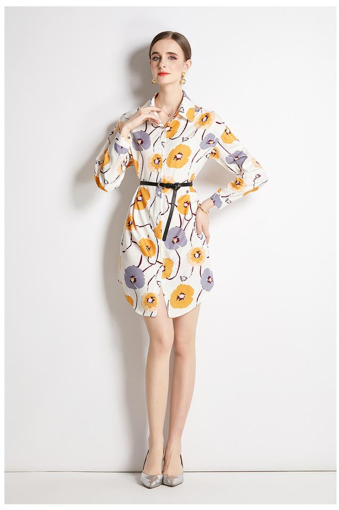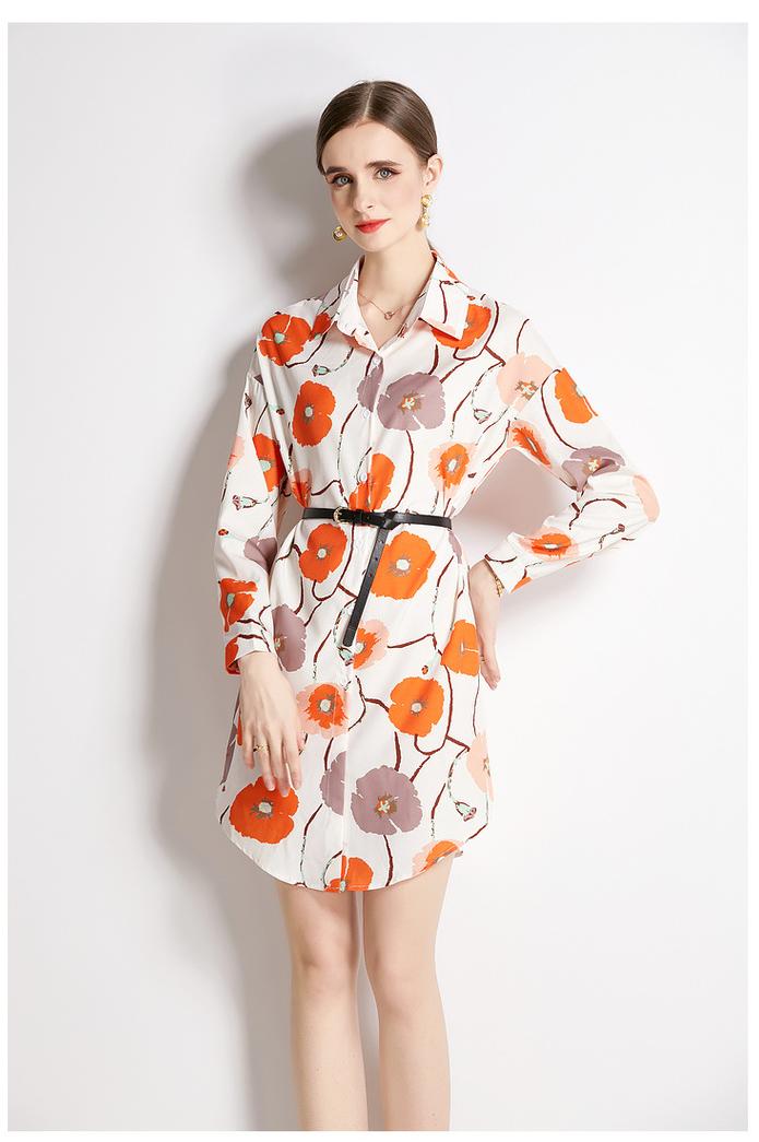 Long Sleeve Shirt With Lapel Collar Fashion Flim Vintage Printed Long Shirt