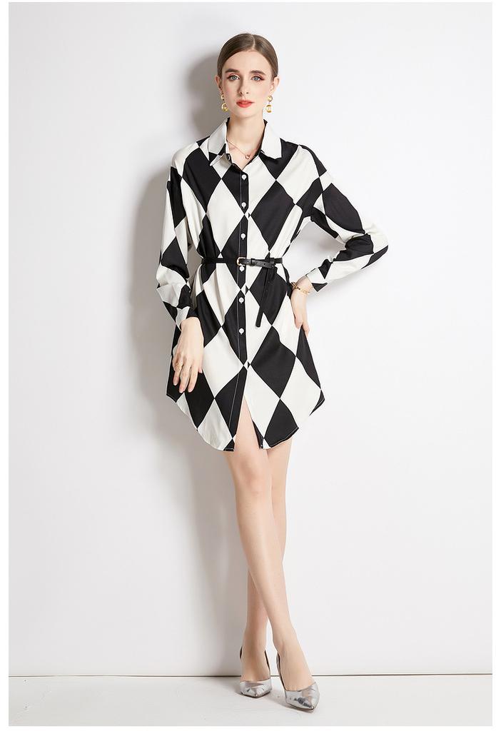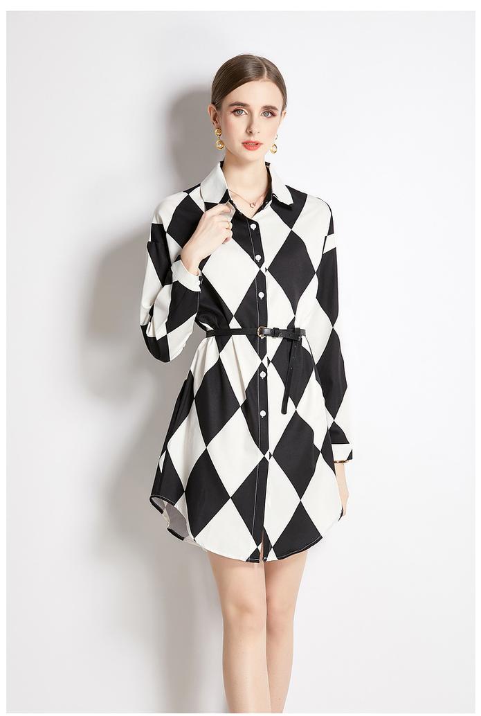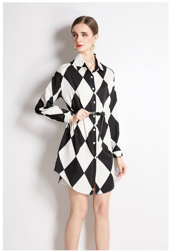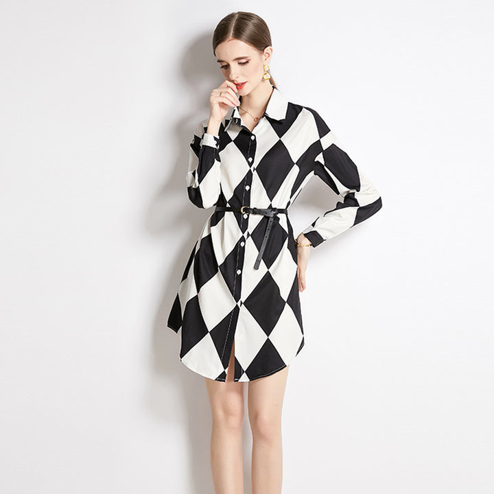Long Sleeve Shirt With Lapel Collar Fashion Slim Vintage Printed Long Shirt