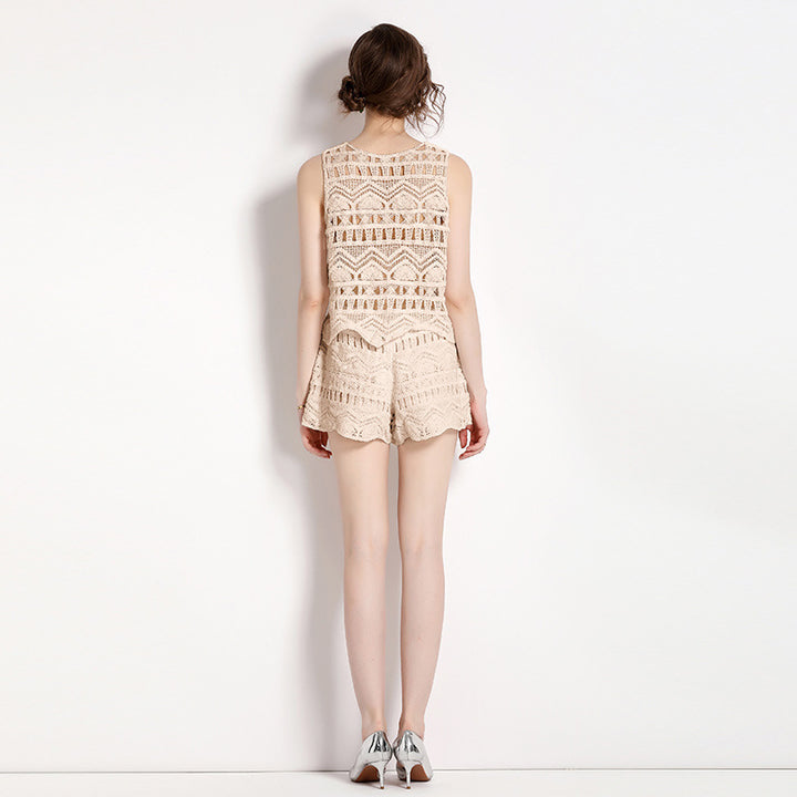 Loose 100 Match Tassel Hook Flower Vest Top + Shorts Two Piece Suit