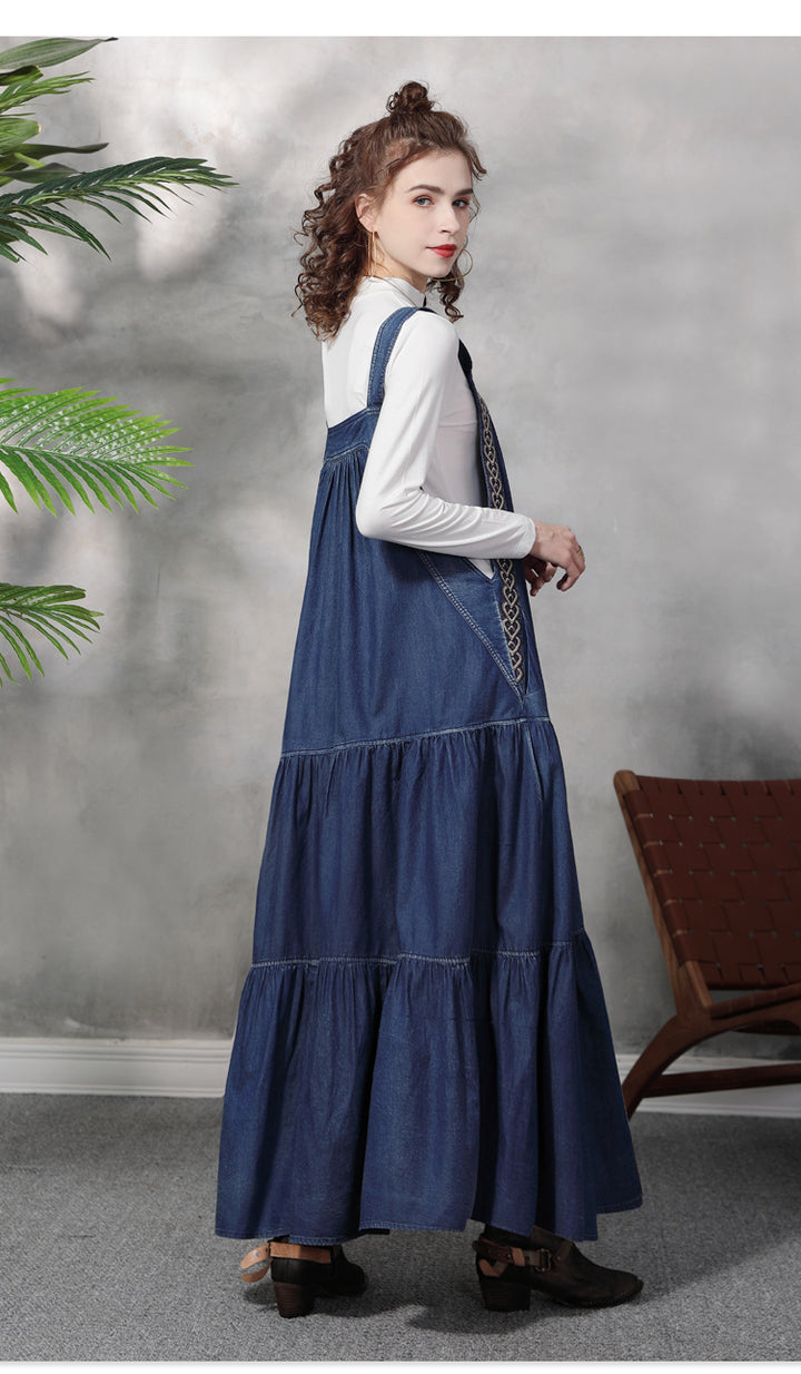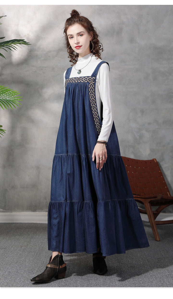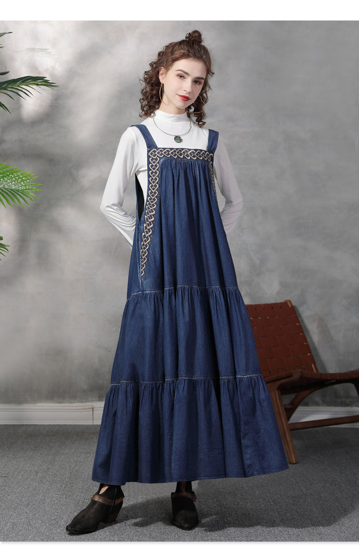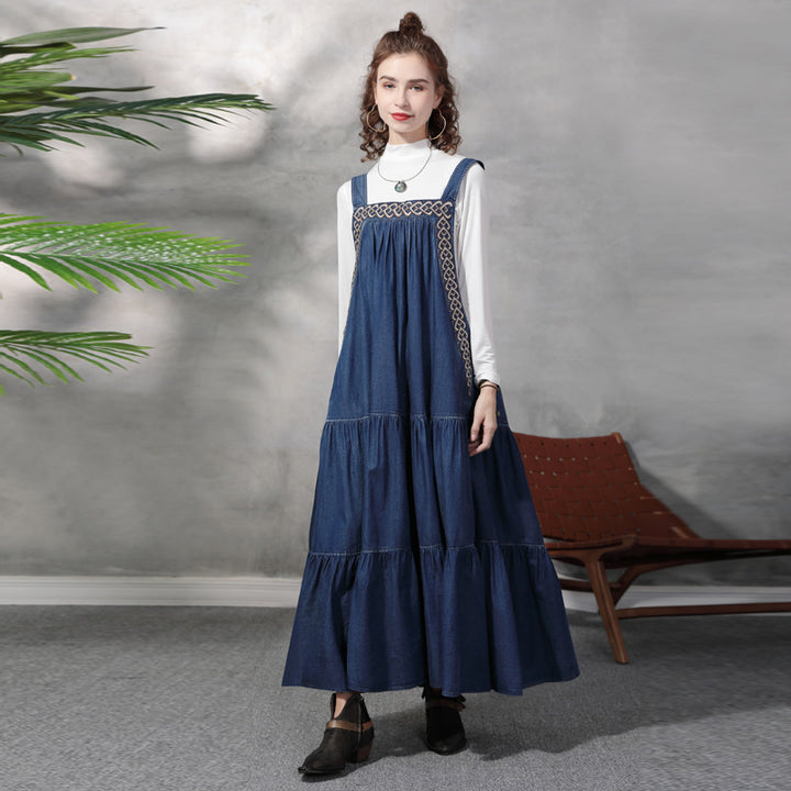 Loose Vintage Embroidery Patchwork Large Swing Dress