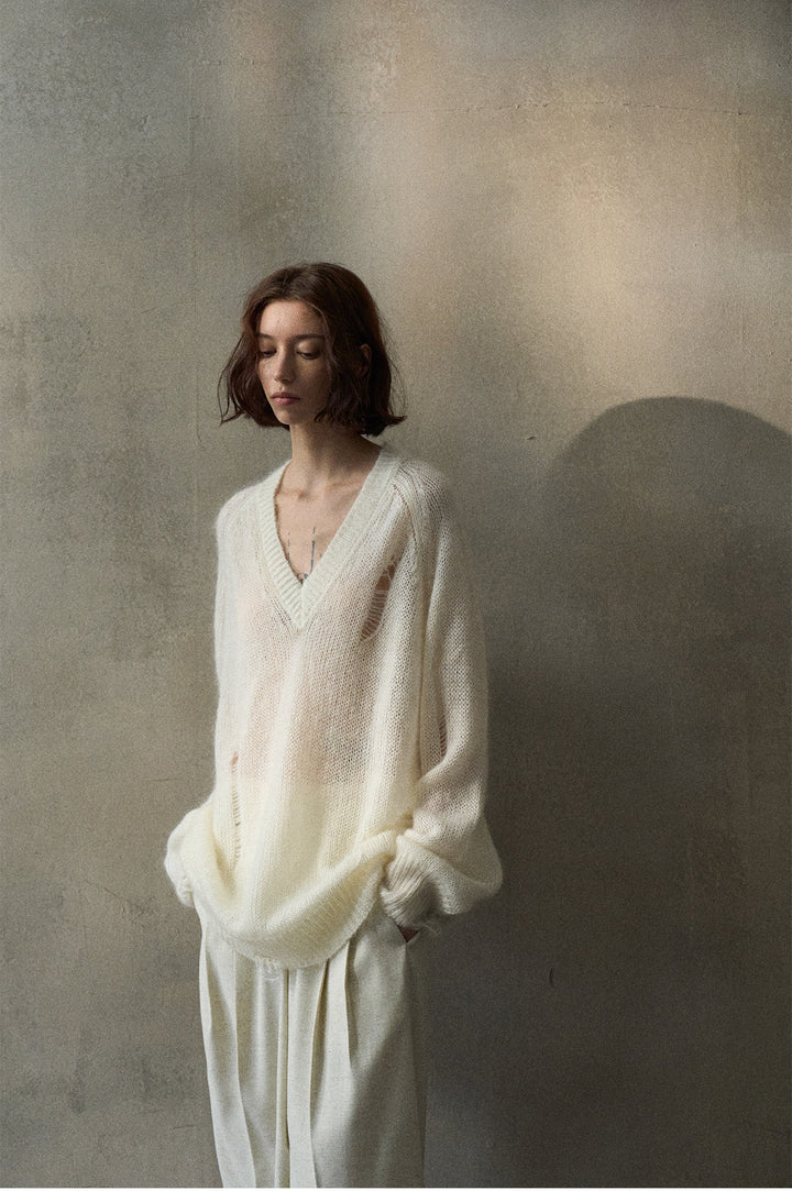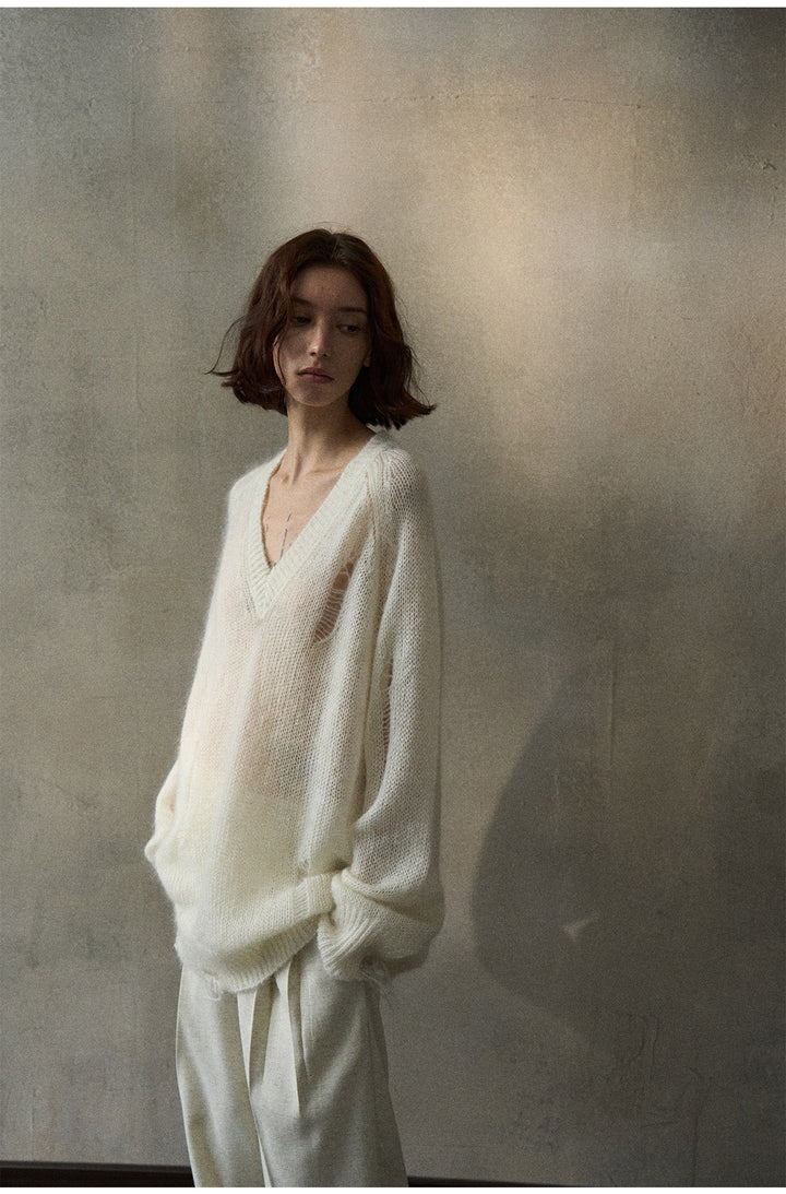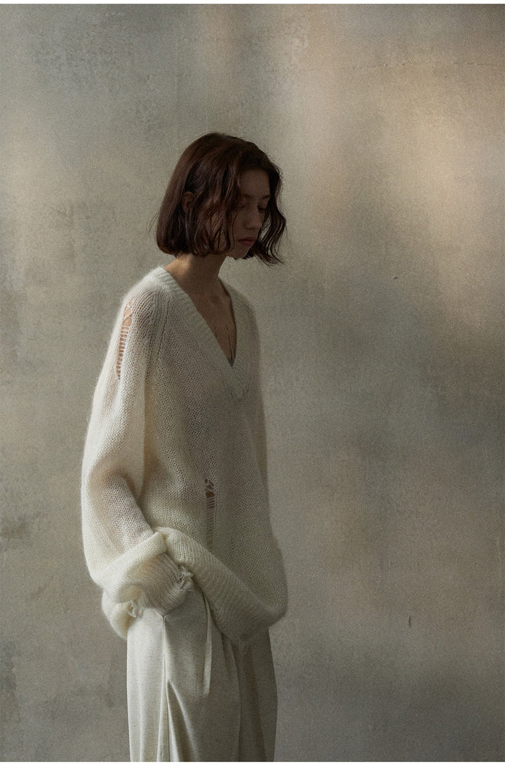 Mohafur Spring Fashion Openwork Fringed Laid-back Knit Wear
