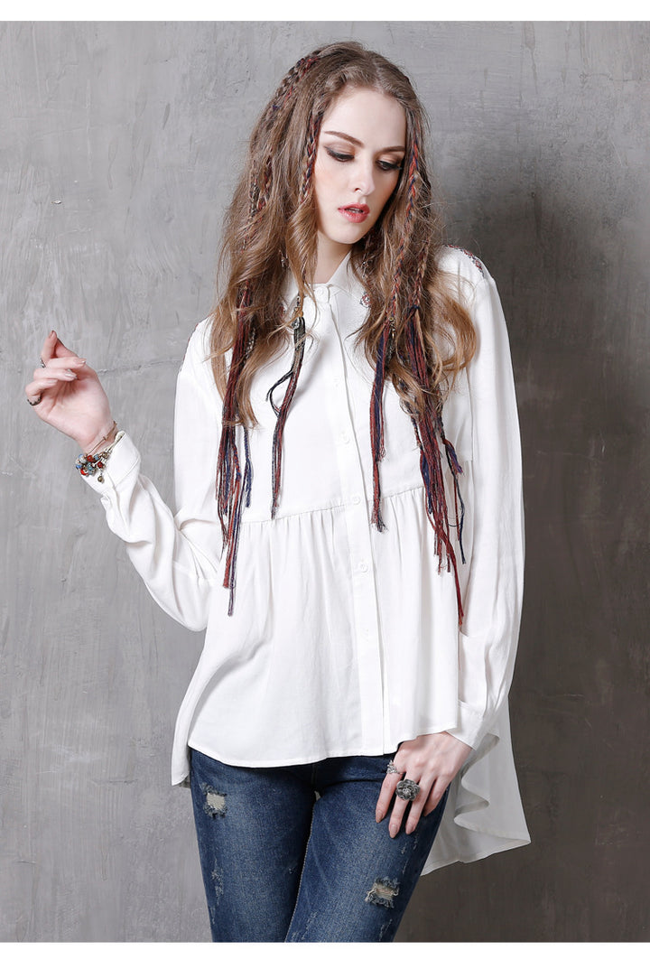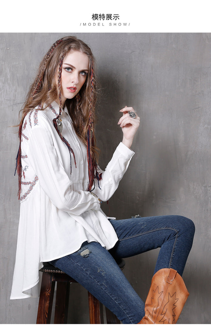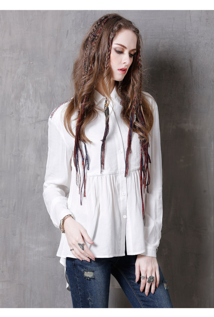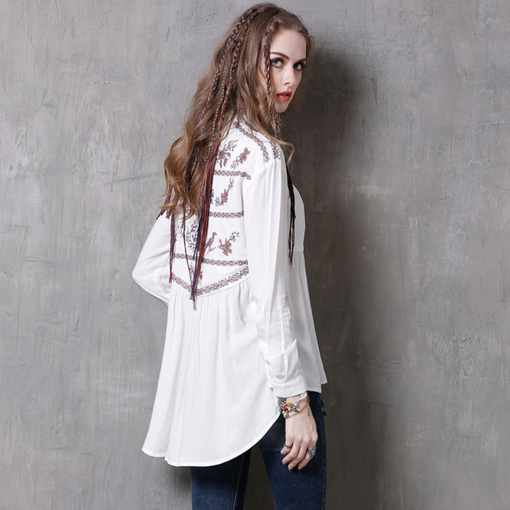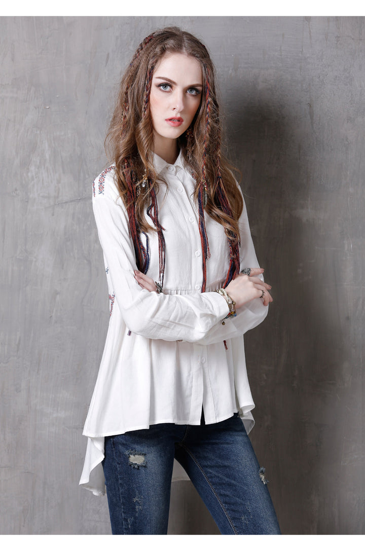 New Embroidered Vintage Lapel Irregular Plus Size Shirt