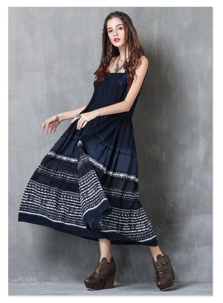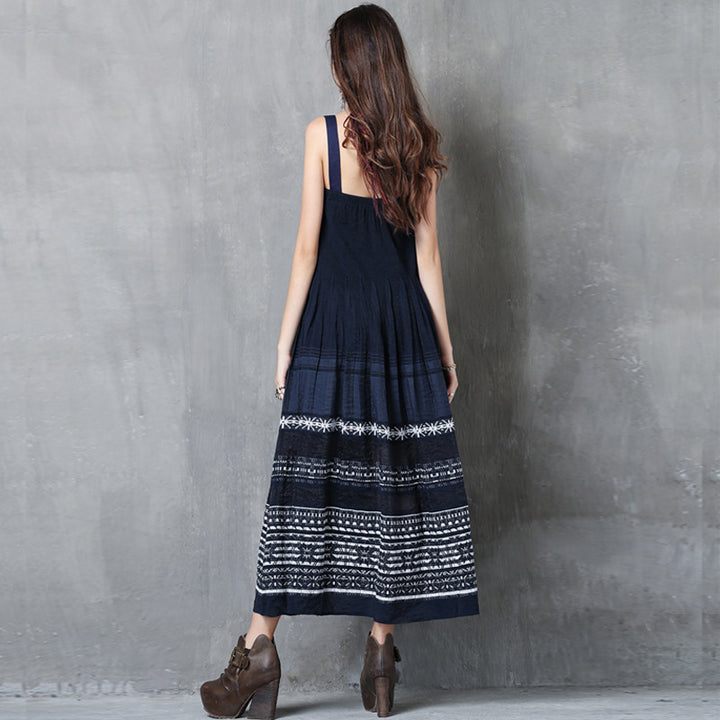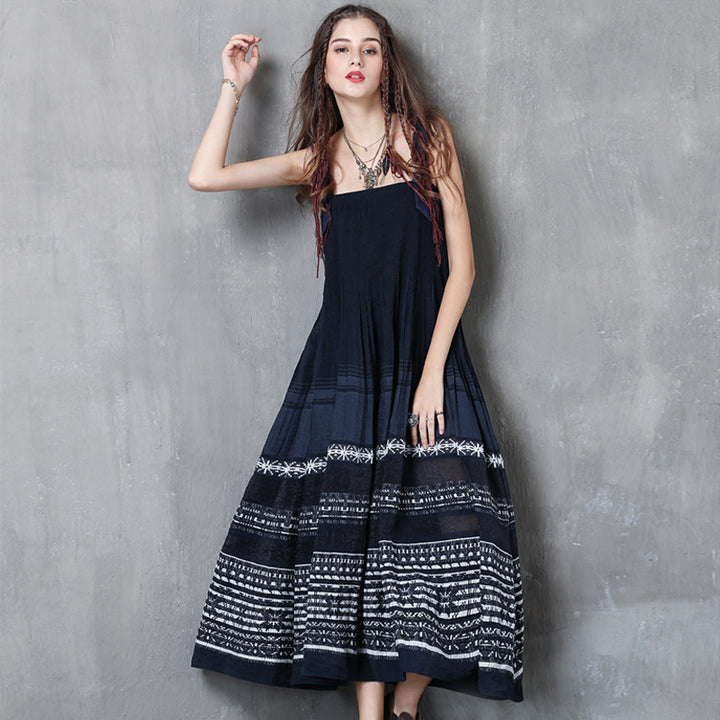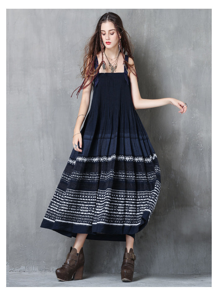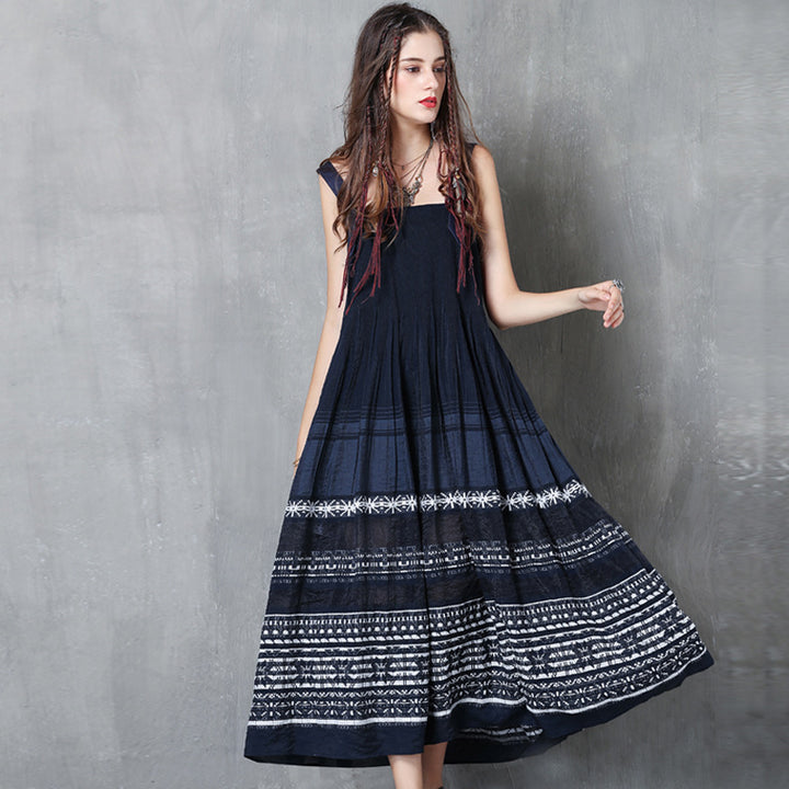 New Sling Skirt Vintage Embroidered Pleated Dress