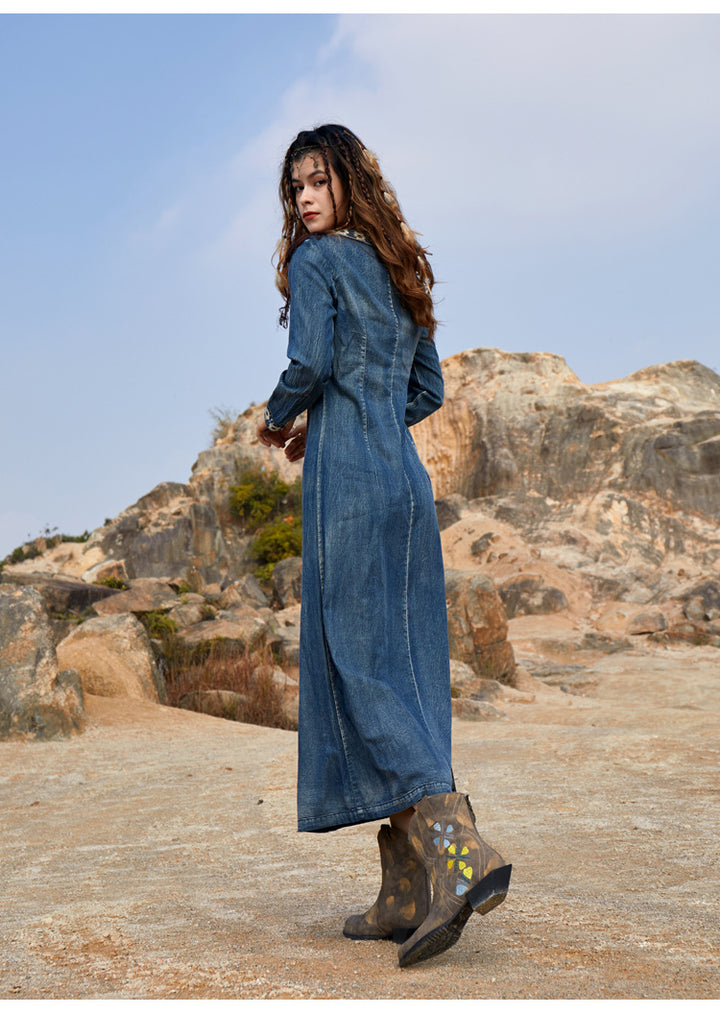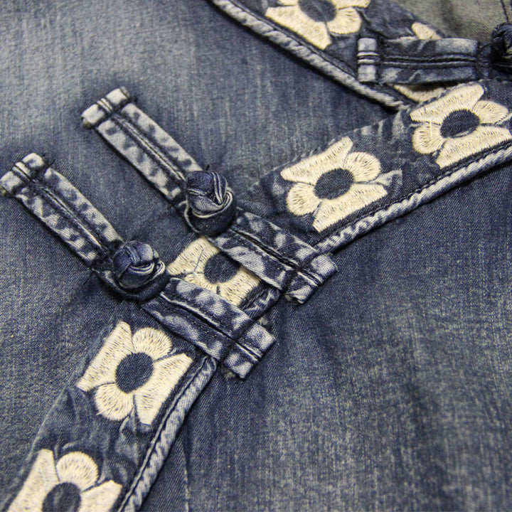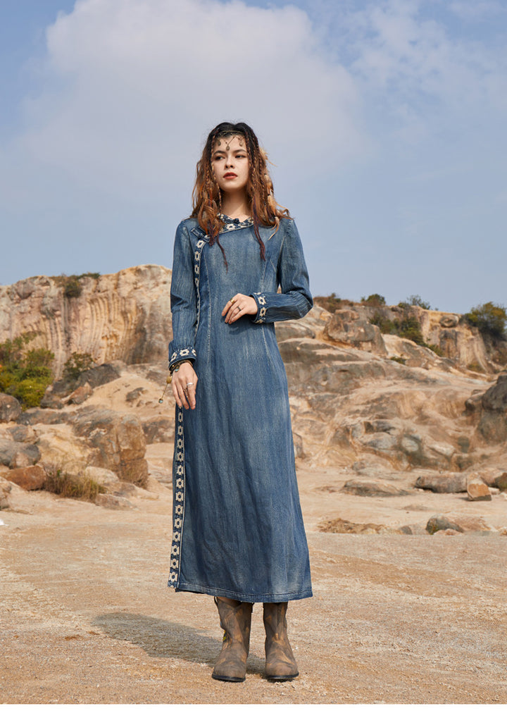 New Vintage Crewneck Denim Skirt Cheongsam Style Dress