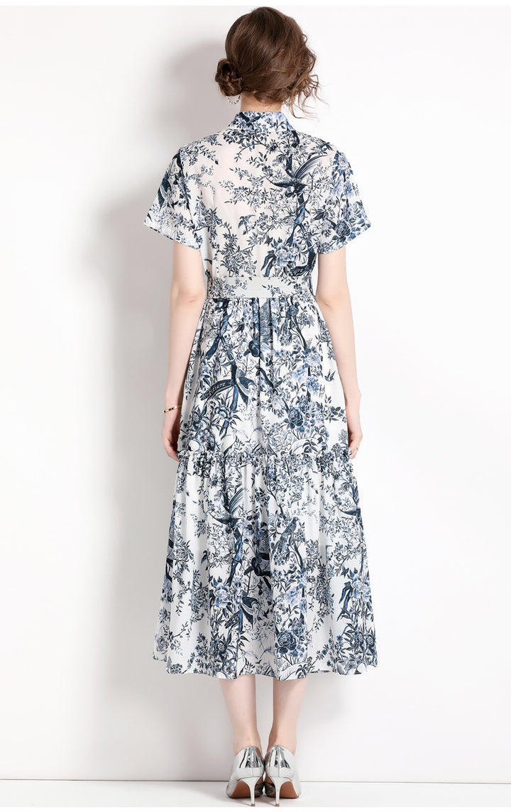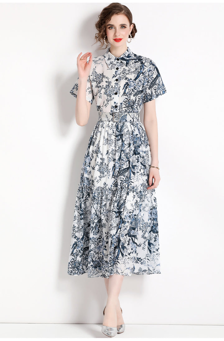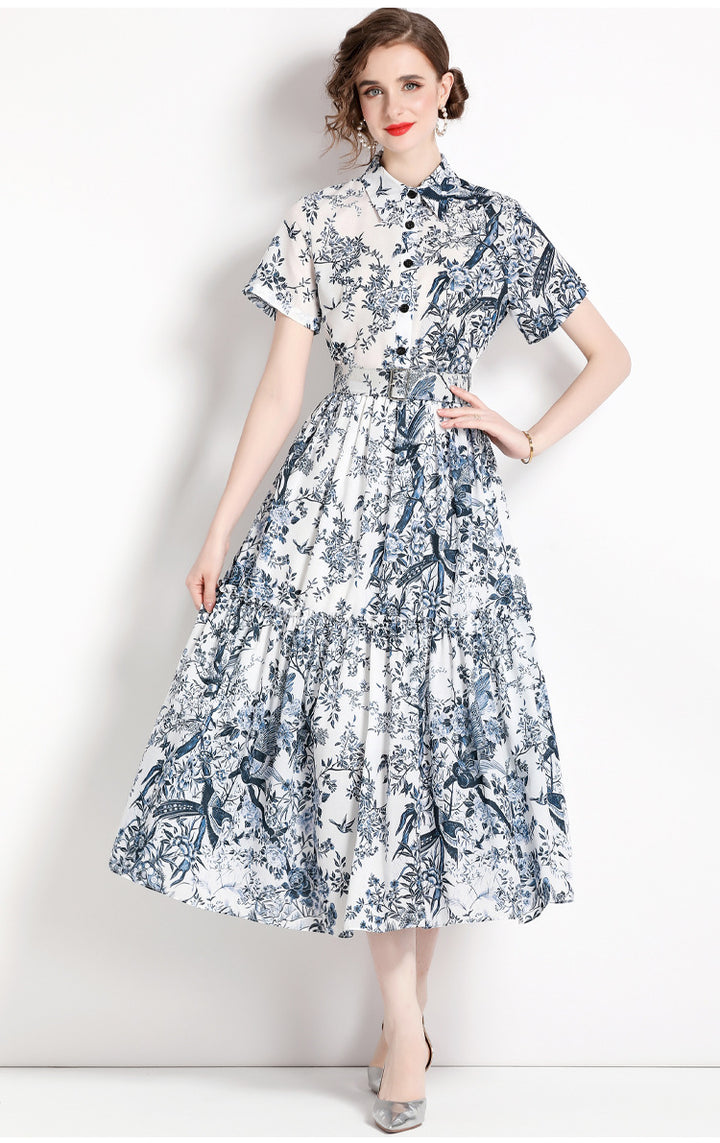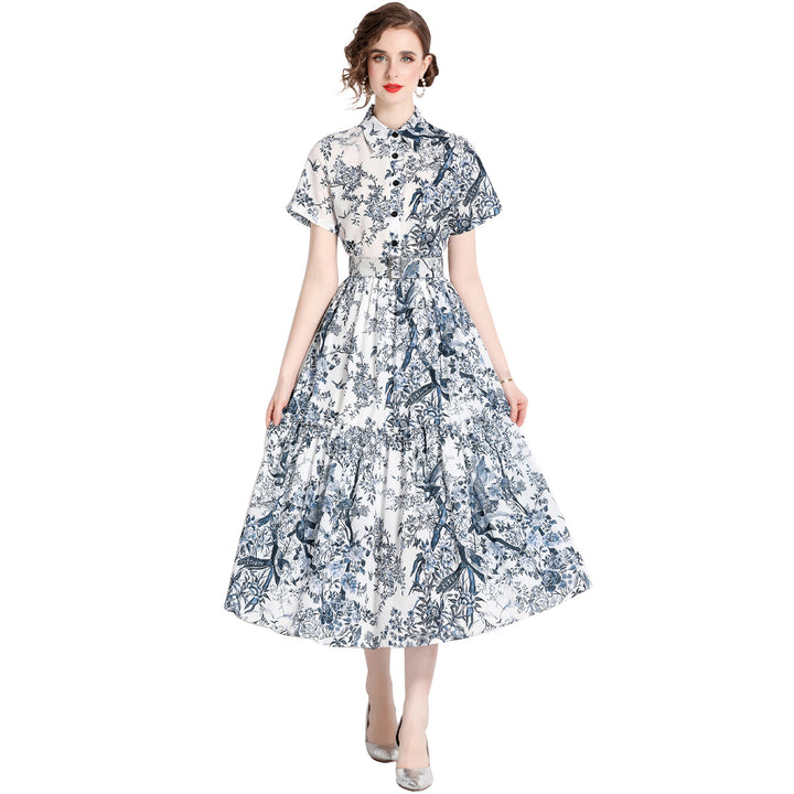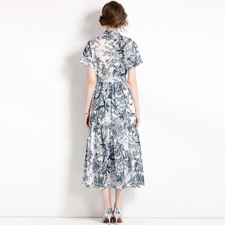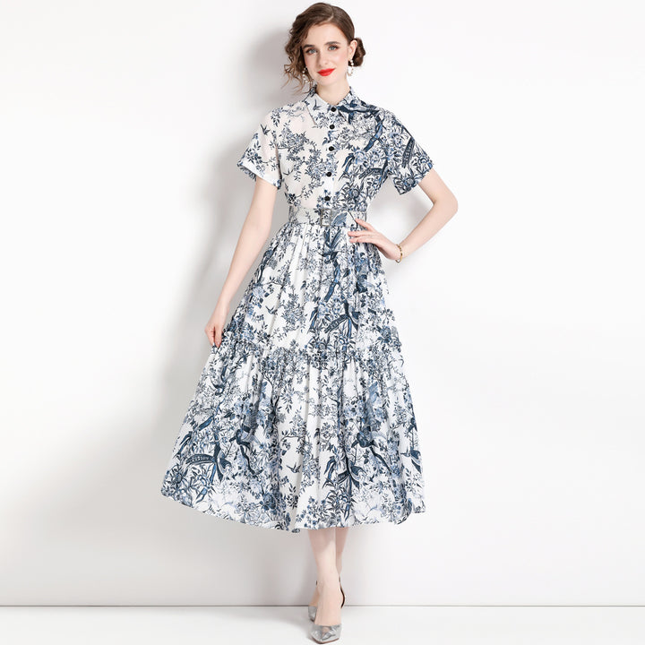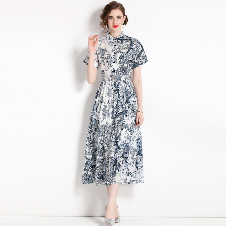 New Women's Slim Mid-Length Printed Short-Sleeved Shirt Dress