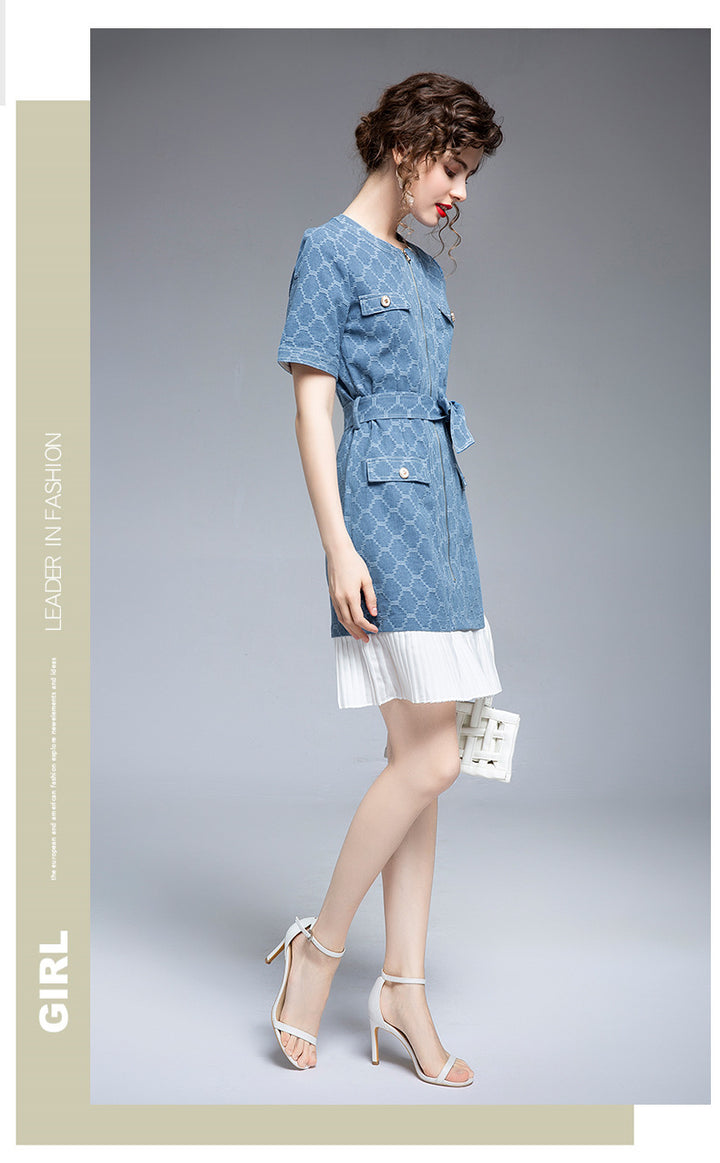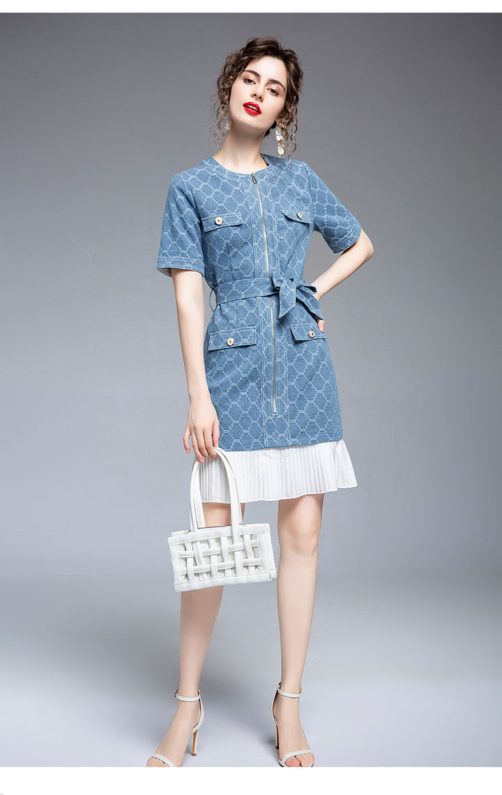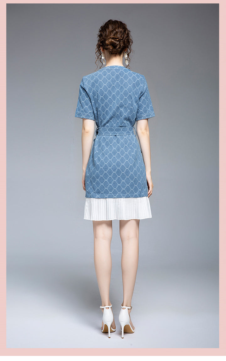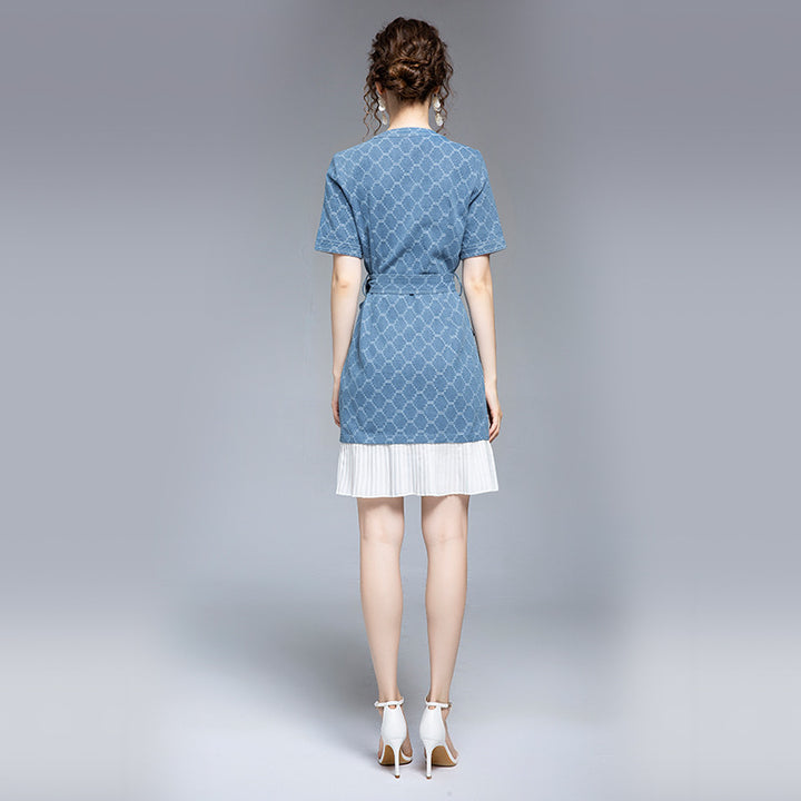 Pleated Lace-Up Waist Slimming Plaid Denim Skirt