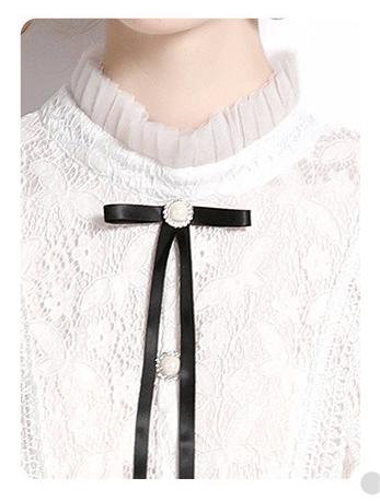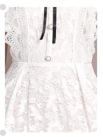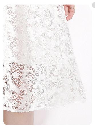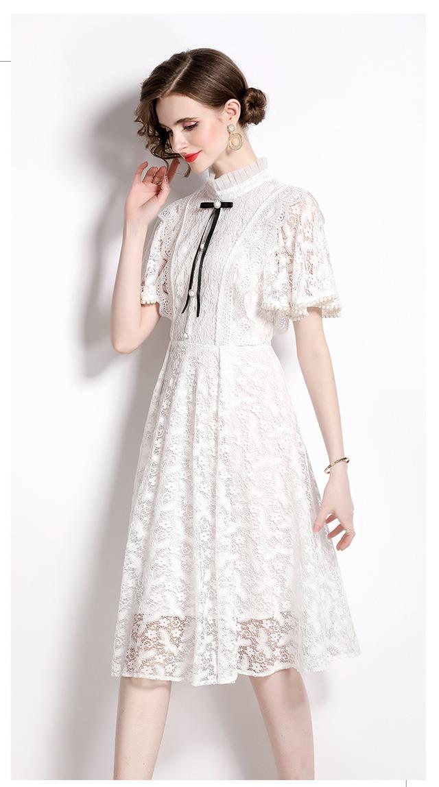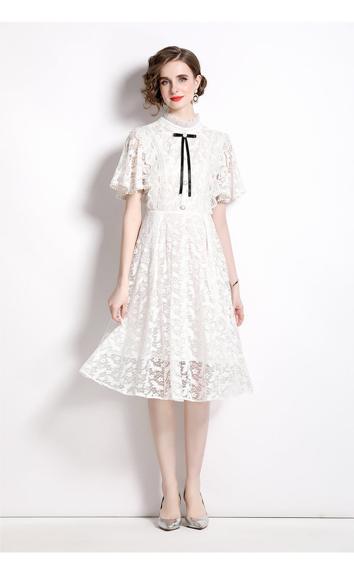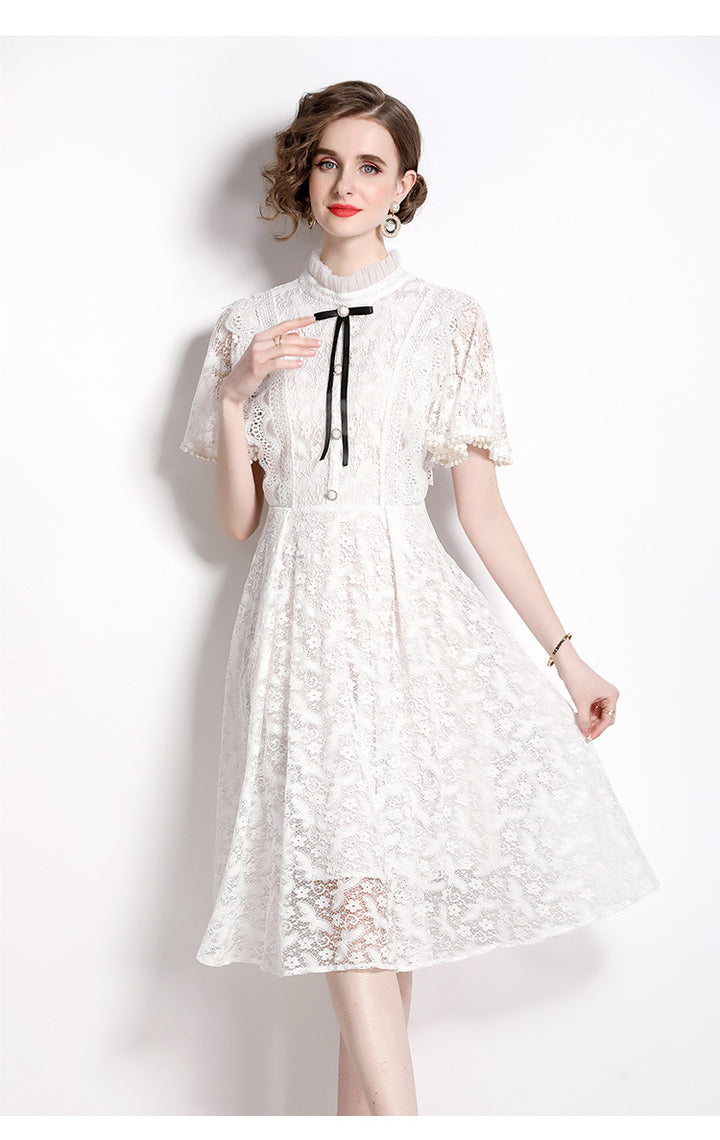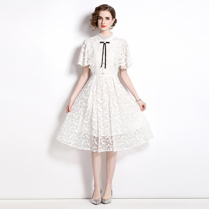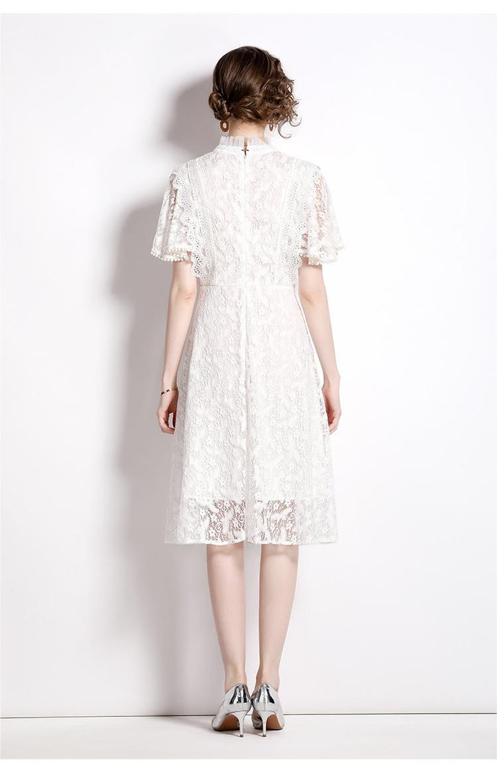 Retro Temperament Slimming Short-Sleeved MIDI Dress White Lace Dress