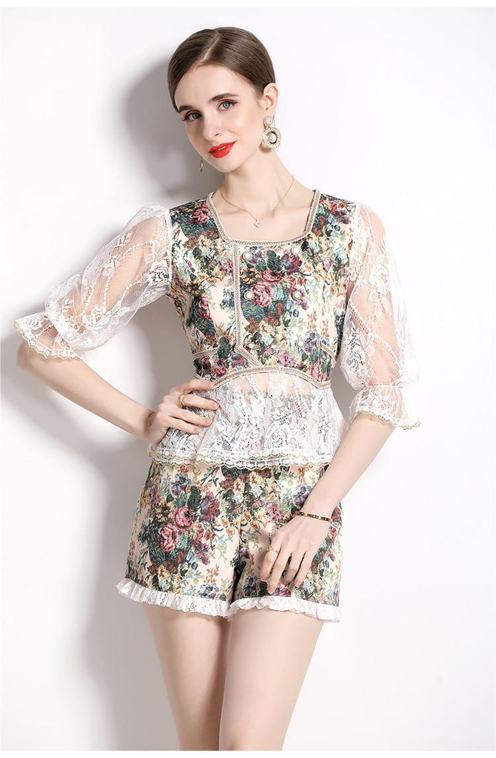 Retro Top Shorts Net Red Goddess Style Two-Piece Set