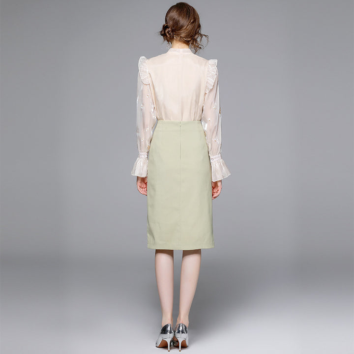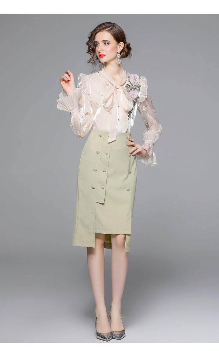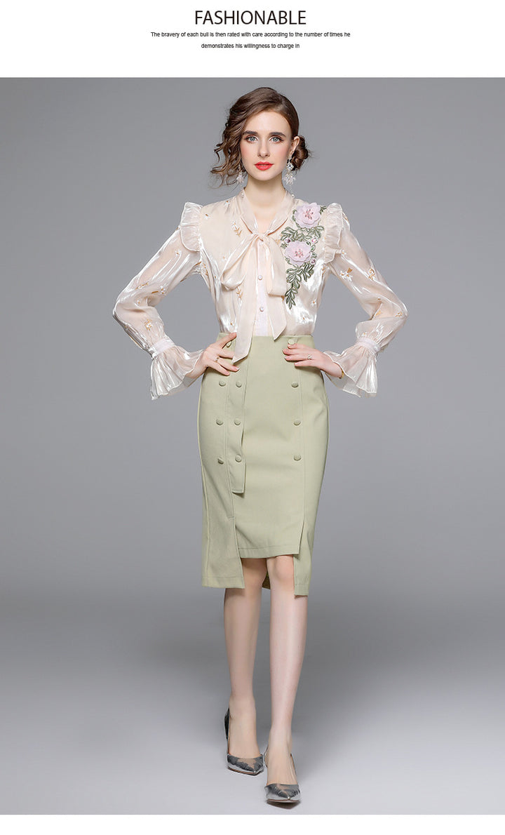 Shirt + Green Fanny Pack Hip Skirt Two-Piece Suit