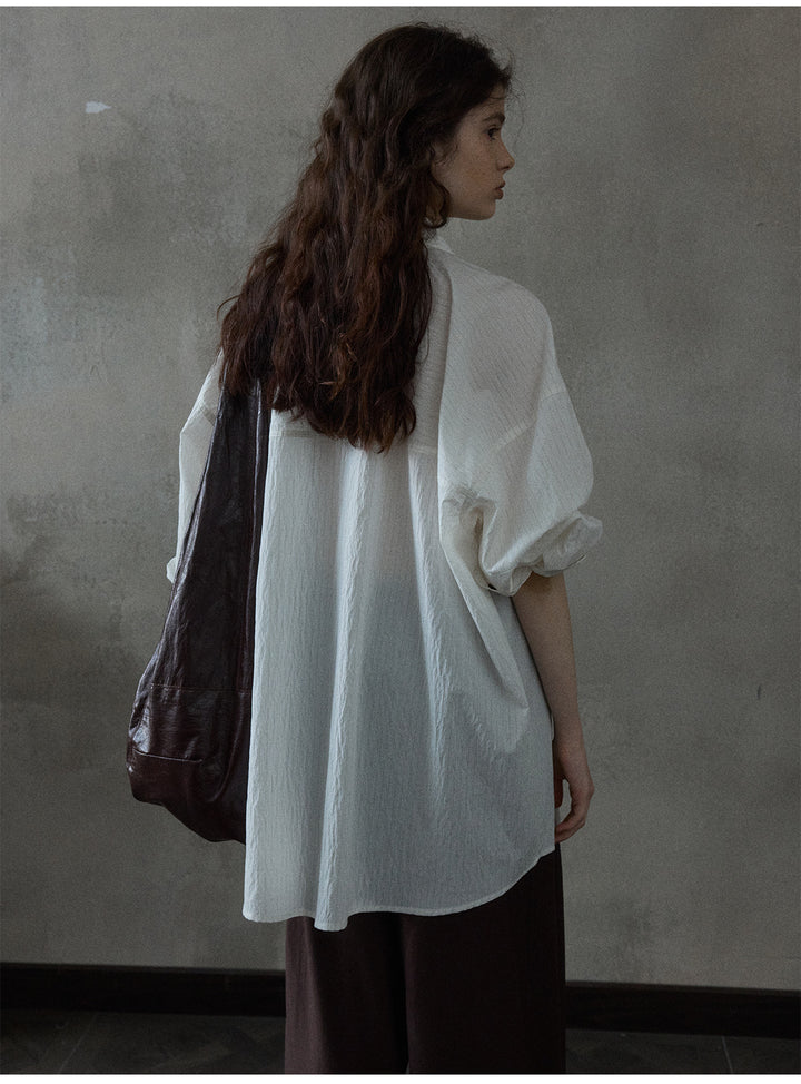 Simple And Loose Short-Sleeved Commuting Striped And Contrasting Fabric Women T-Shirt