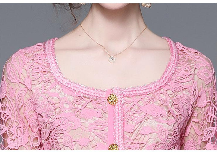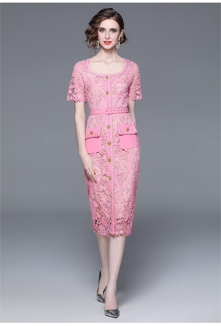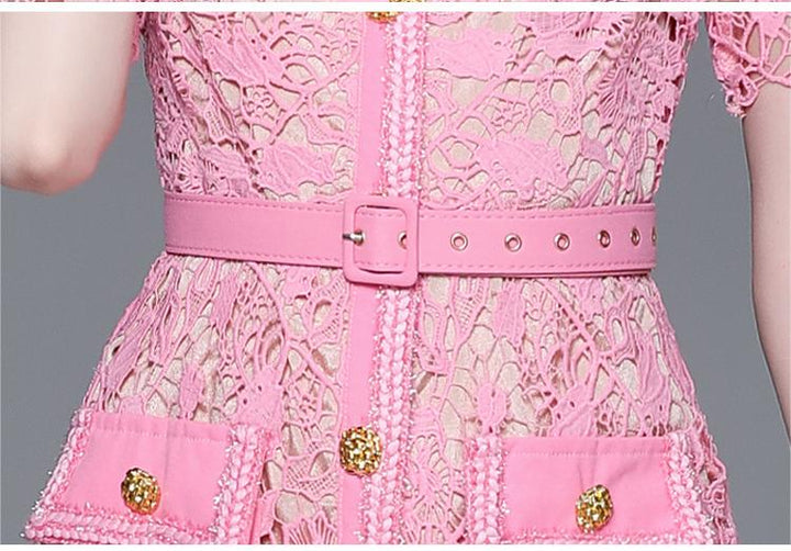 Single Breasted Water Soluble Lace-Up Fanny Pack Hip Mid-Length Dress
