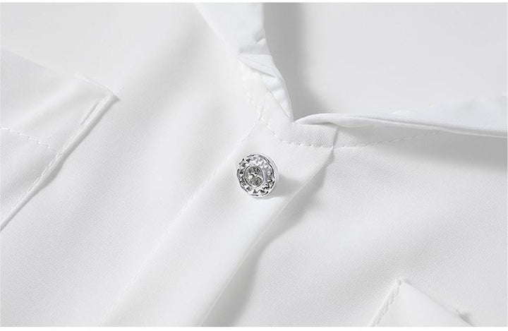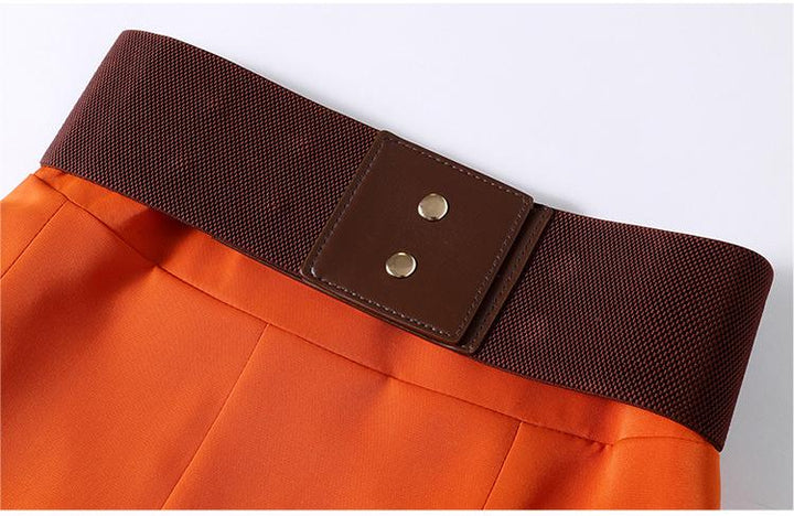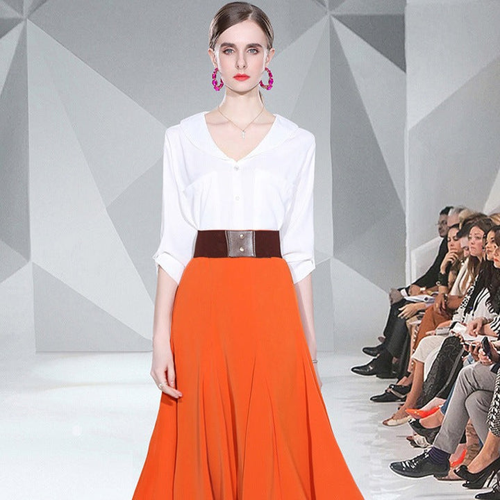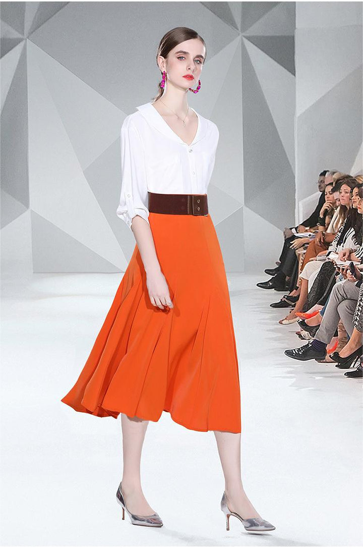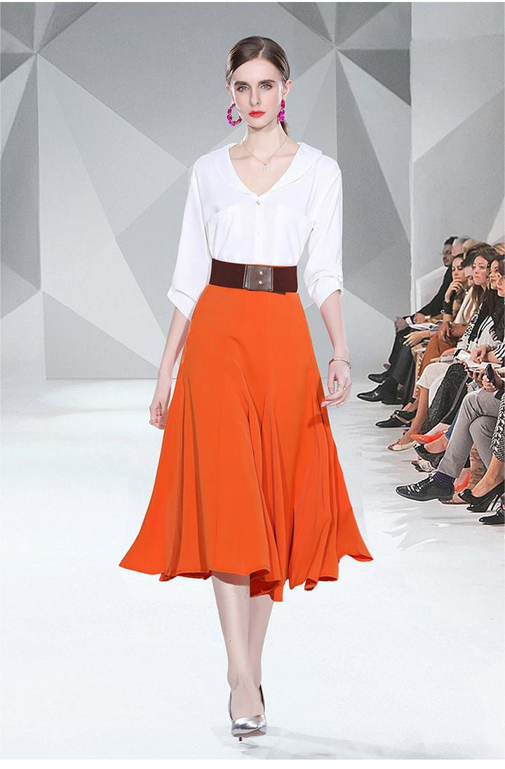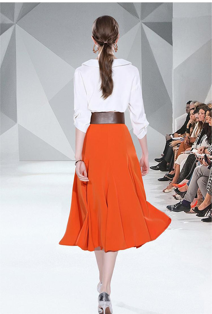 Small Fresh White Shirt and Orange Patchwork Skirt Two-piece Set