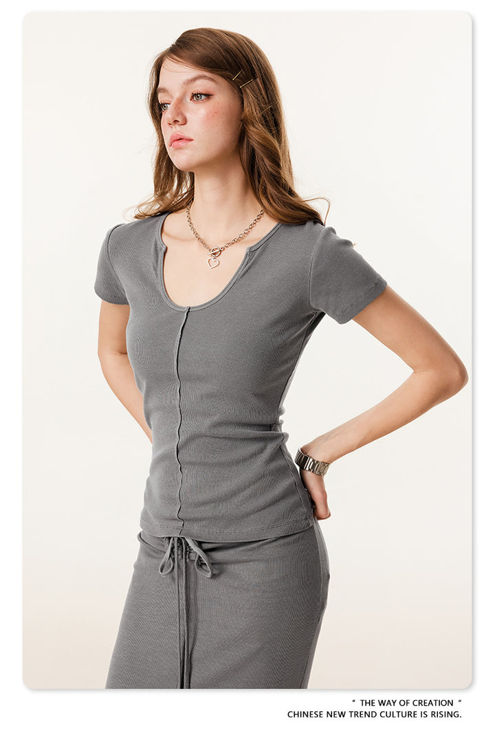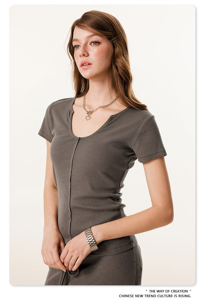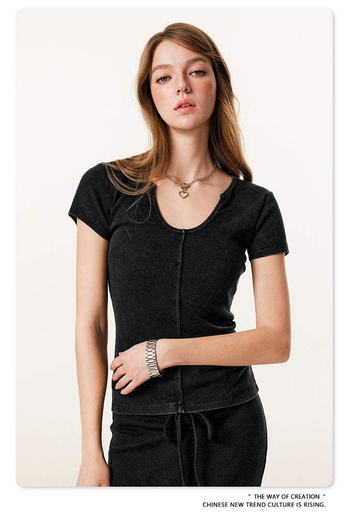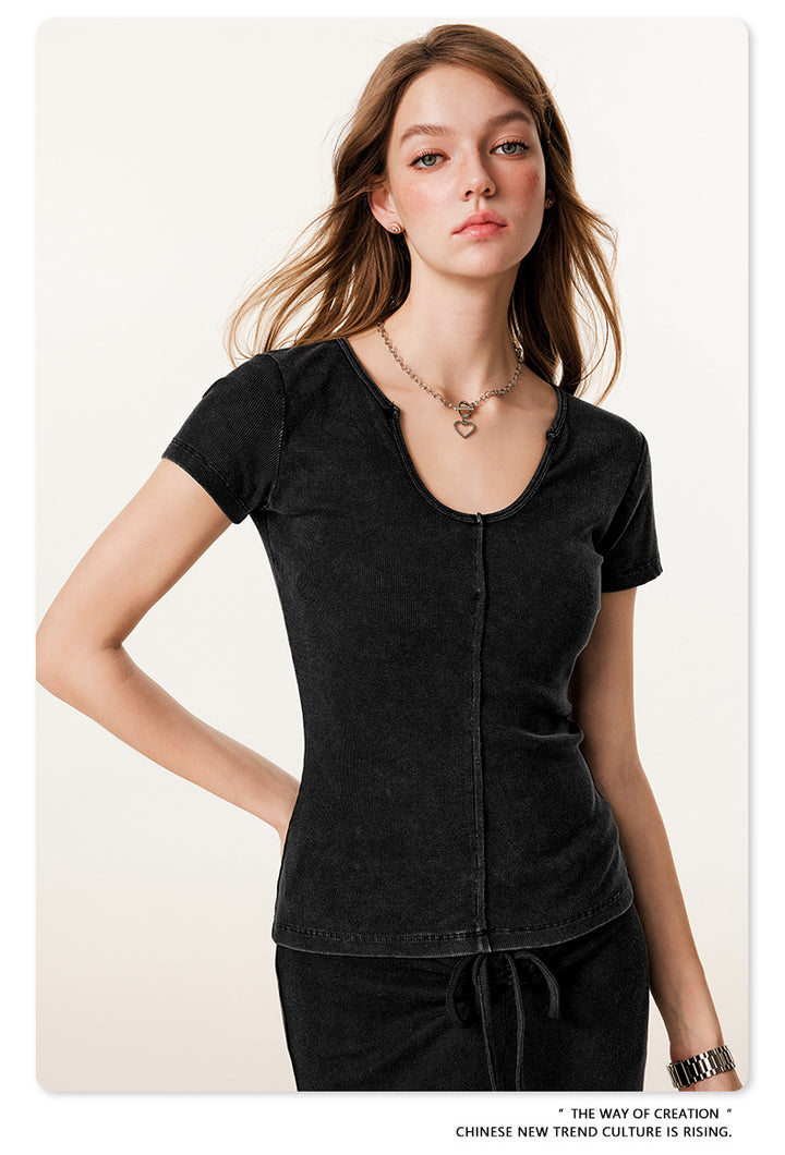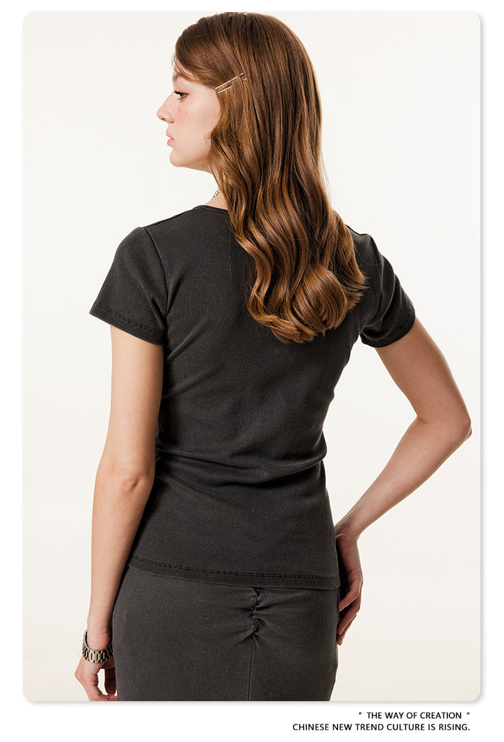 Solid-color Hot Girl Batik Aged Pullover Cotton Top